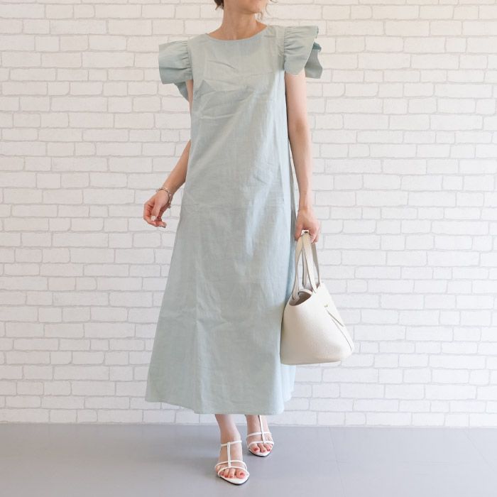 送料無料 フリル袖ロングワンピース レディース 春 夏 ロング丈 ≪ゆうメール便配送20・代引不可≫ | アクアガレージ aquagarage
