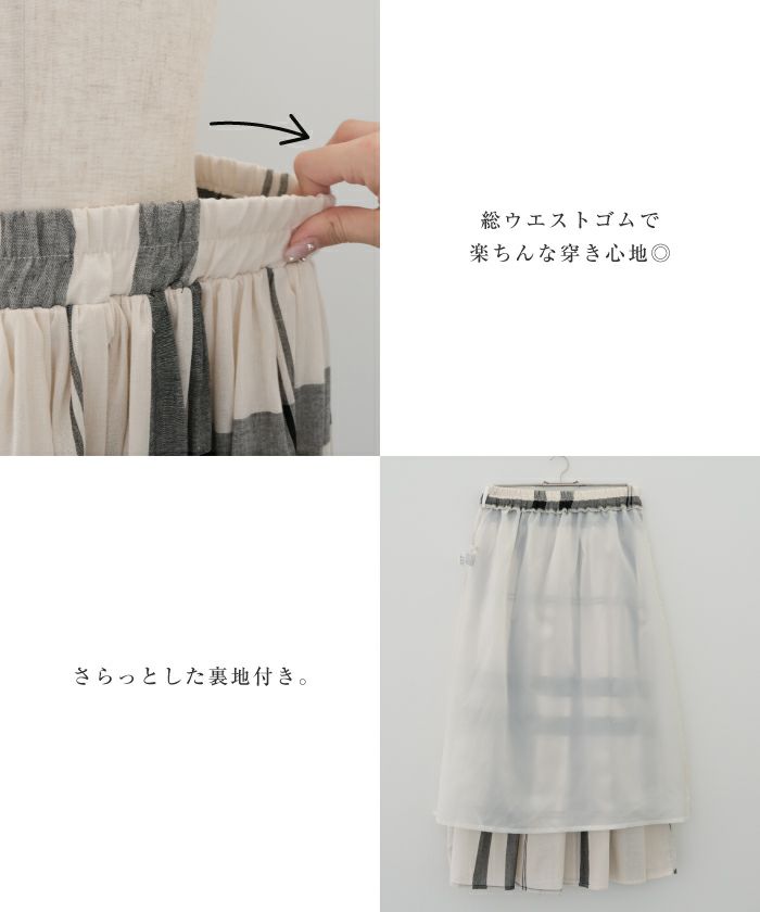 チェックガーゼギャザースカート 春 夏 秋 M L アクアガレージ aquagarage