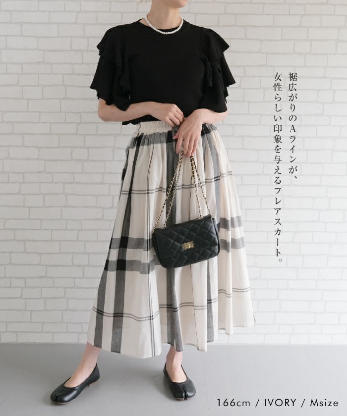 送料無料 チェック柄ウエストタックフレアスカート レディース 春 秋 夏 M L ≪ゆうメール便配送30・代引不可≫ | アクアガレージ aquagarage