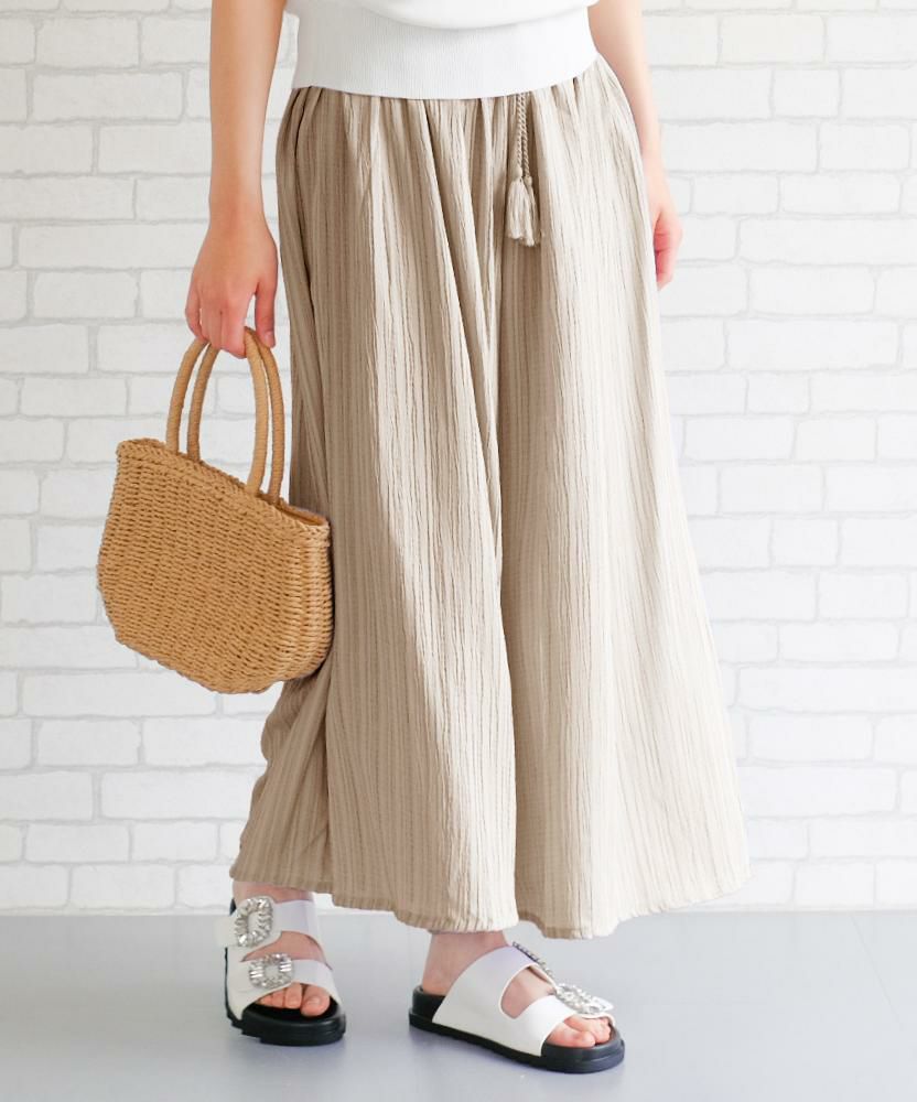 【最終値下げ価格】ワッシャー楊柳ギャザーガウチョパンツ レディース 春 夏 秋 M L | アクアガレージ aquagarage