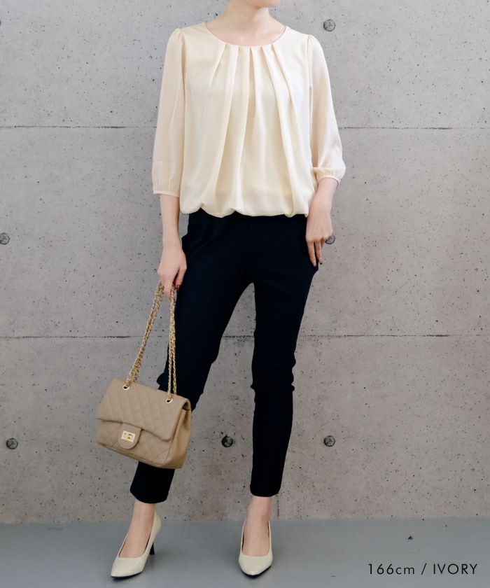 送料無料 フロントタックシフォンブラウス レディース S M L XL LL 3L 4L 七分袖 春夏秋 ≪ゆうメール便配送20・代引不可≫ | アクアガレージ aquagarage