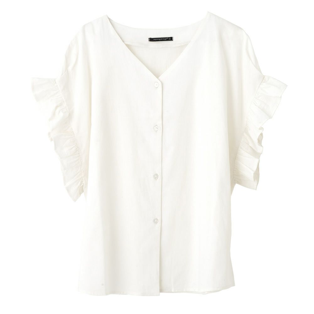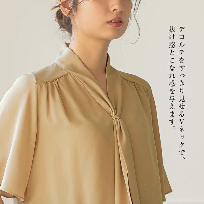 送料無料 涼しげ素材のラッフルスリーブVネックブラウス ≪ゆうメール便配送10・代引不可≫ | アクアガレージ aquagarage