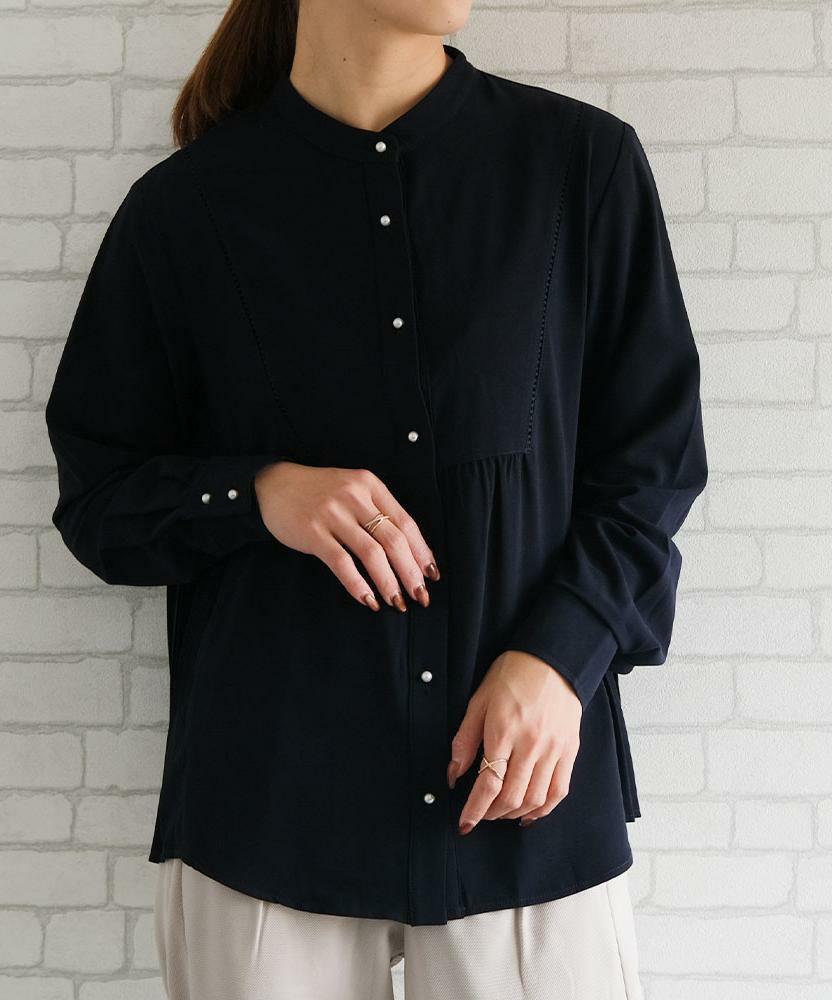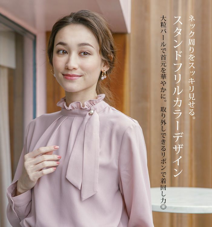 送料無料 フリルスタンドカラーブラウス レディース 春 秋 長袖 M L ≪ゆうメール便配送30・代引不可≫ | アクアガレージ aquagarage