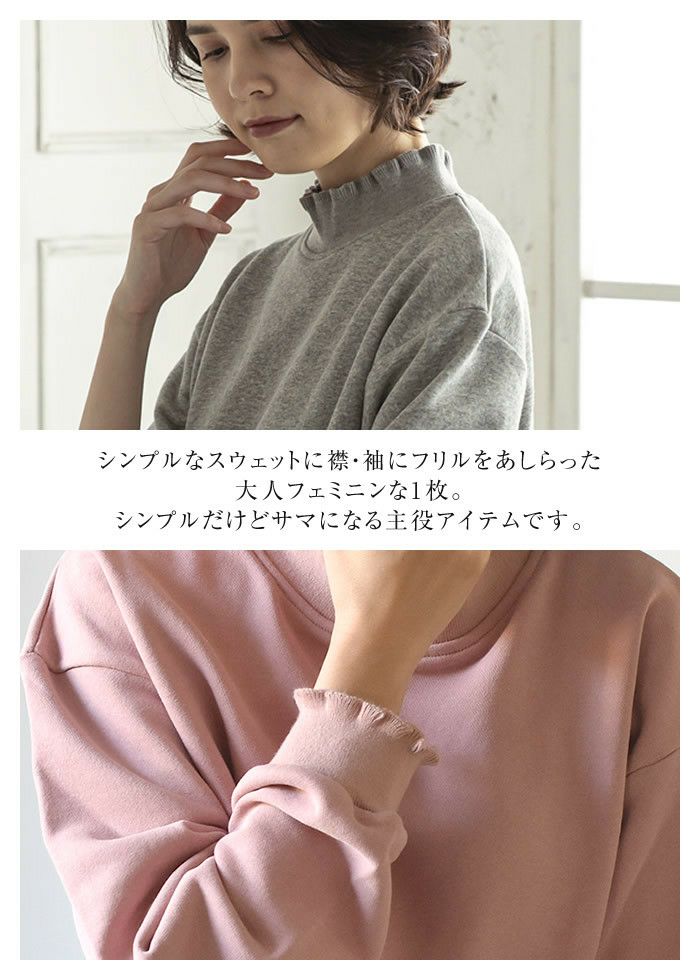 送料無料 袖・襟フリルスウェットトップス レディース 秋 冬 M L 長袖 ≪ゆうメール便配送30・代引不可≫ | アクアガレージ aquagarage