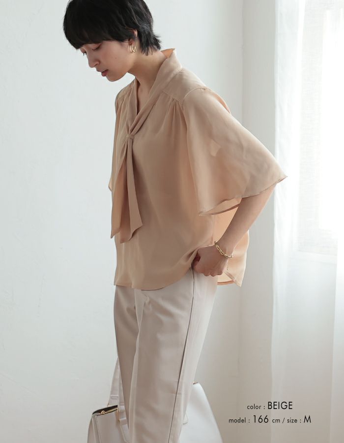 送料無料 スカーフタイフレア袖ブラウス レディース 春 夏 M L 半袖 七分袖 八分袖 ≪ゆうメール便配送20・代引不可≫ | アクアガレージ aquagarage