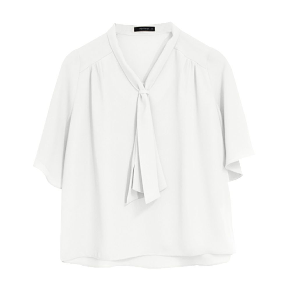 送料無料 ボウタイブラウス レディース 春 夏 秋 半袖 五分袖 フレアスリーブ ≪ゆうメール便配送10・代引不可≫ | アクアガレージ aquagarage
