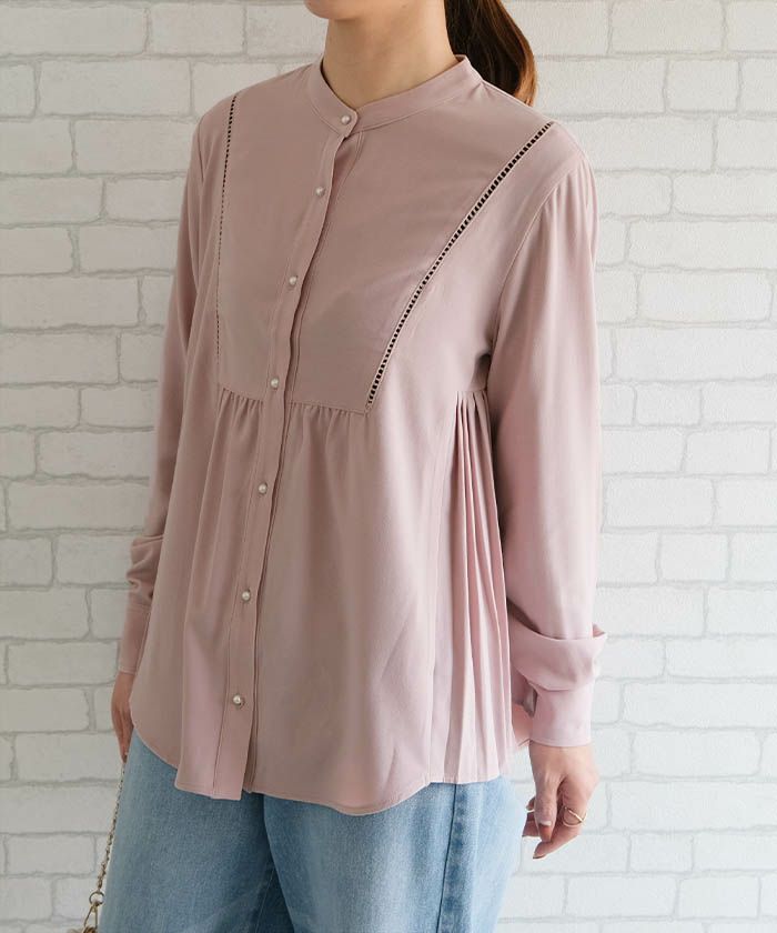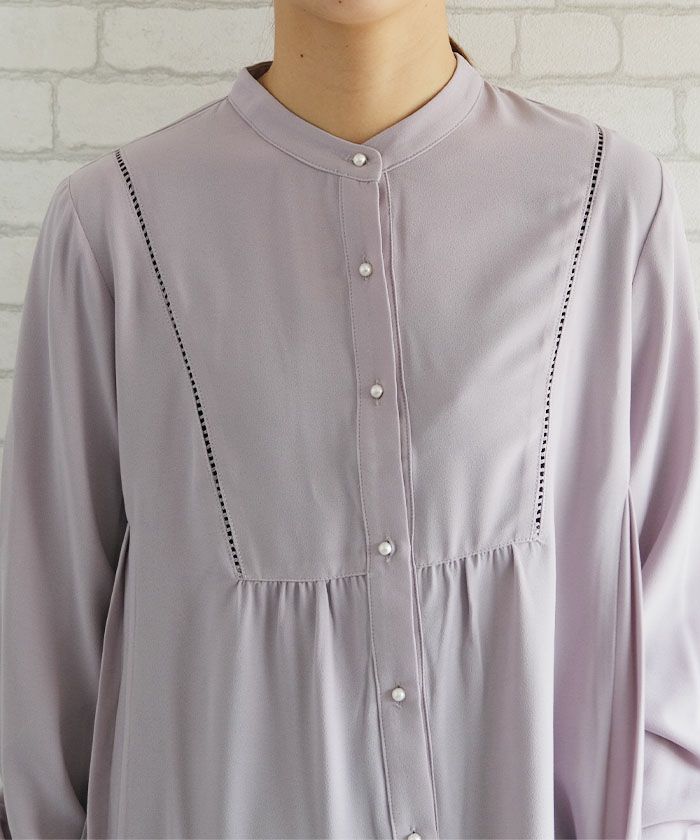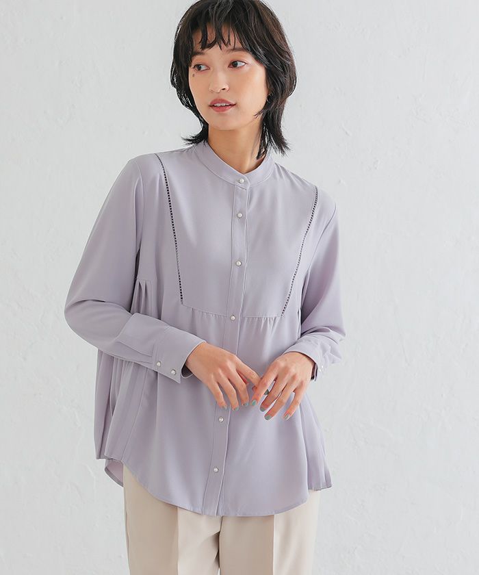 【999円祭り】スタンドカラーシアー素材ブラウス レディース 春 夏 秋 長袖 M L | アクアガレージ aquagarage