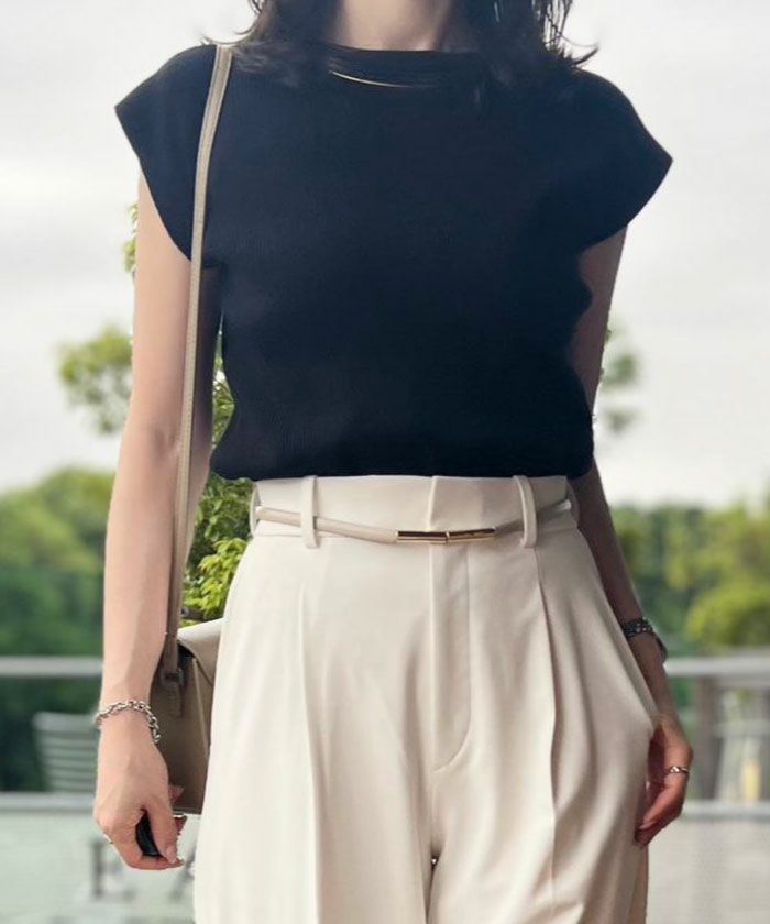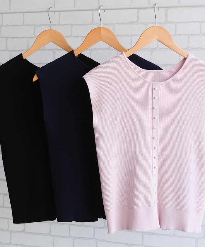 送料無料 前後2wayフレンチスリーブリブニットトップス 春 夏 秋 ≪ゆうメール便配送20・代引不可≫ | アクアガレージ aquagarage