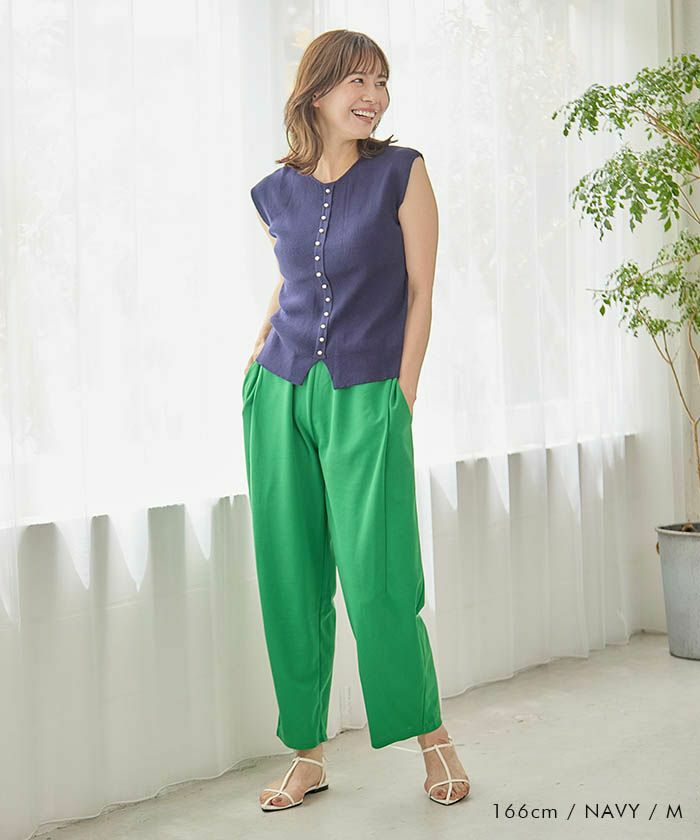 送料無料 梨地ウエストゴムテーパードパンツ レディース 春 夏 秋 M L ≪ゆうメール便配送30・代引不可≫ | アクアガレージ aquagarage