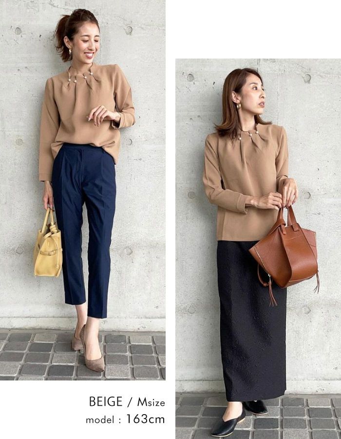 送料無料 パールネックブラウス レディース 春 秋 S M L LL 3L 長袖 ≪ゆうメール便配送30・代引不可≫ | アクアガレージ aquagarage