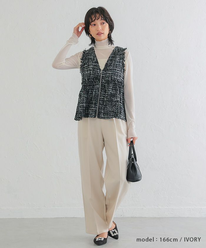 送料無料 ヘリンボーンタックパンツ レディース 春 秋 冬 M |アクアガレージ aquagarage
