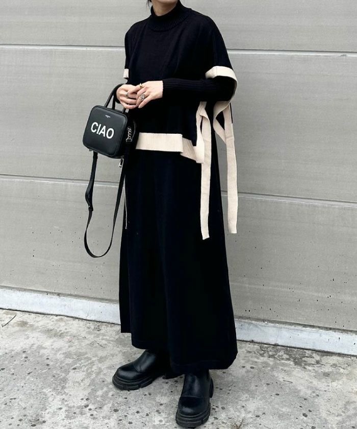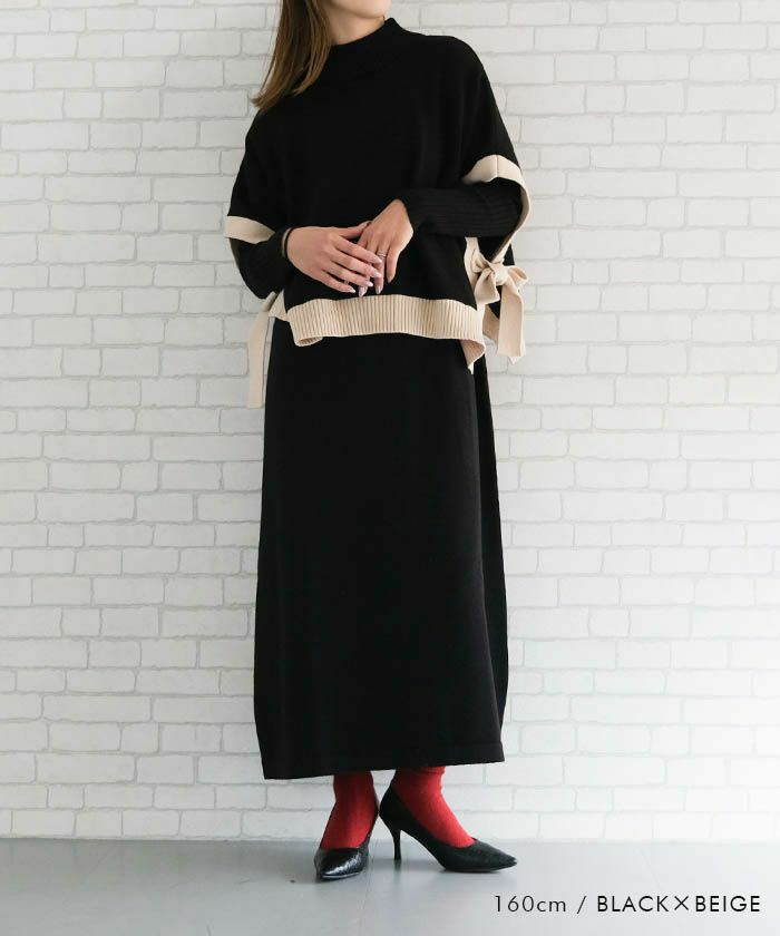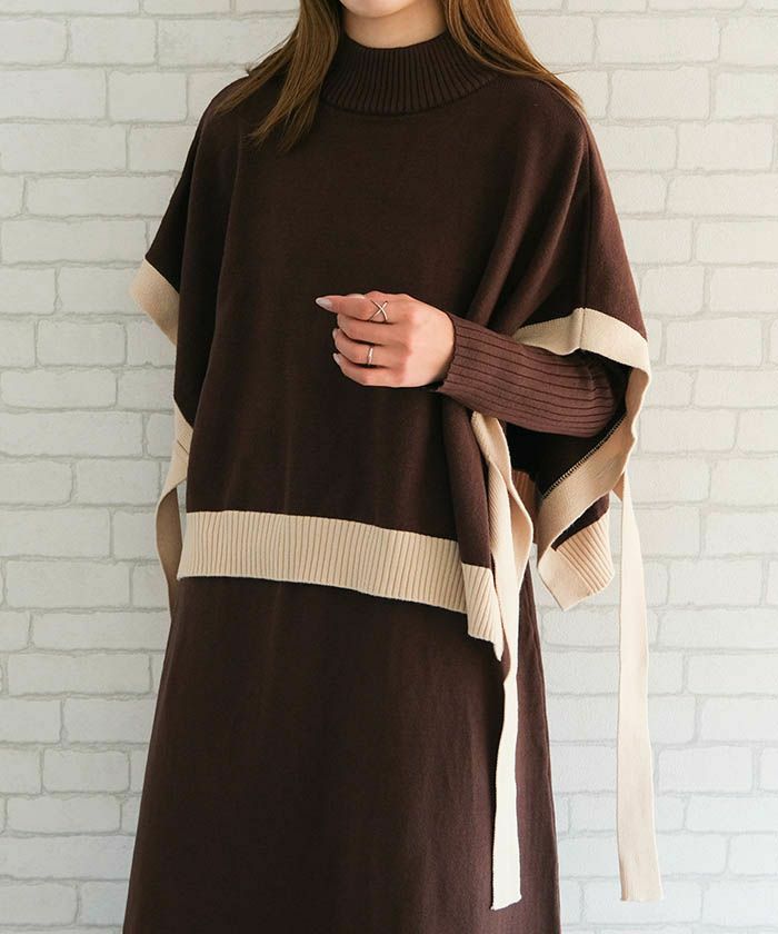 送料無料 サイドリボンケープ付きリブニットワンピース レディース 秋 冬 | アクアガレージ aquagarage