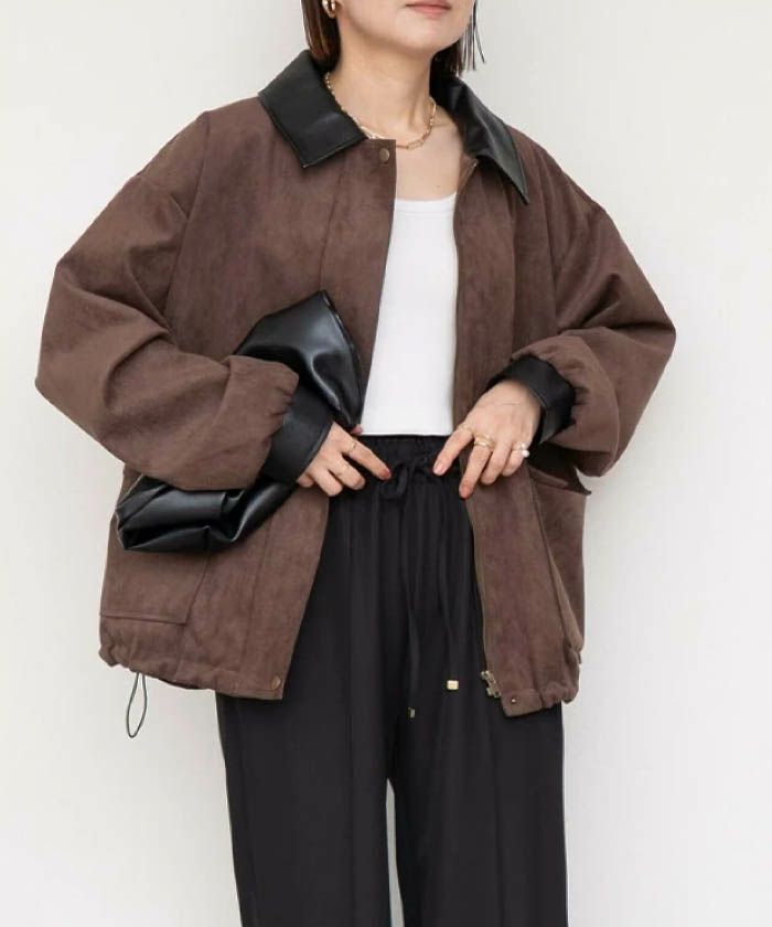 送料無料 襟配色フェイクスエードジャケット 秋 冬 M | アクアガレージ aquagarage
