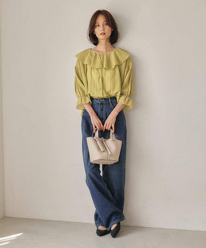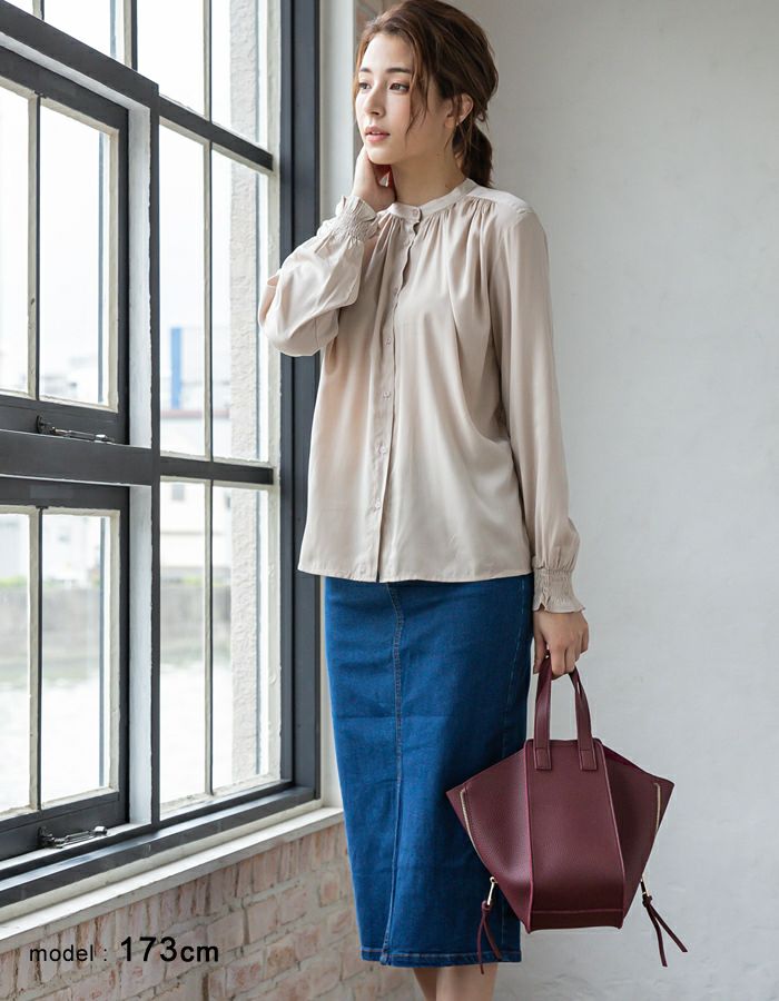 送料無料 バンドカラーフランネルブラウス 春 秋 冬 ≪ゆうメール便配送30・代引不可≫| アクアガレージ aquagarage aquagarage