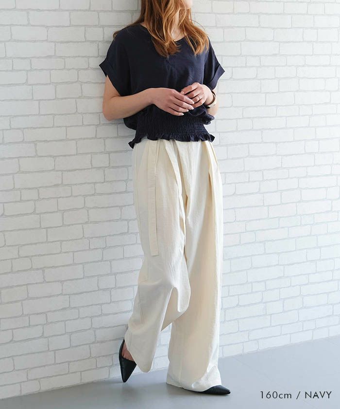 送料無料 ウエストシャーリング深Vネックブラウス ≪ゆうメール便配送20・代引不可≫ | アクアガレージ aquagarage