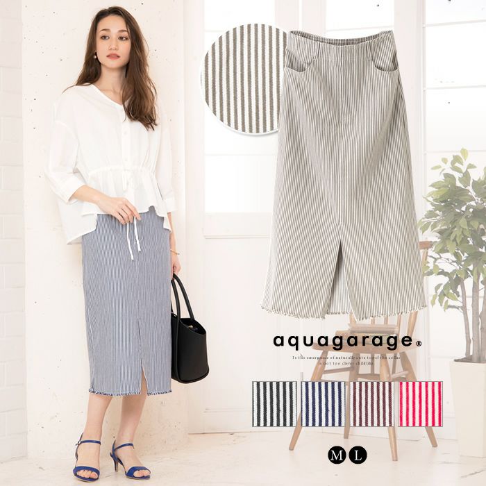 【999円祭り】ヒッコリーハイウエストタイトスカート フロントスリット | アクアガレージ aquagarage