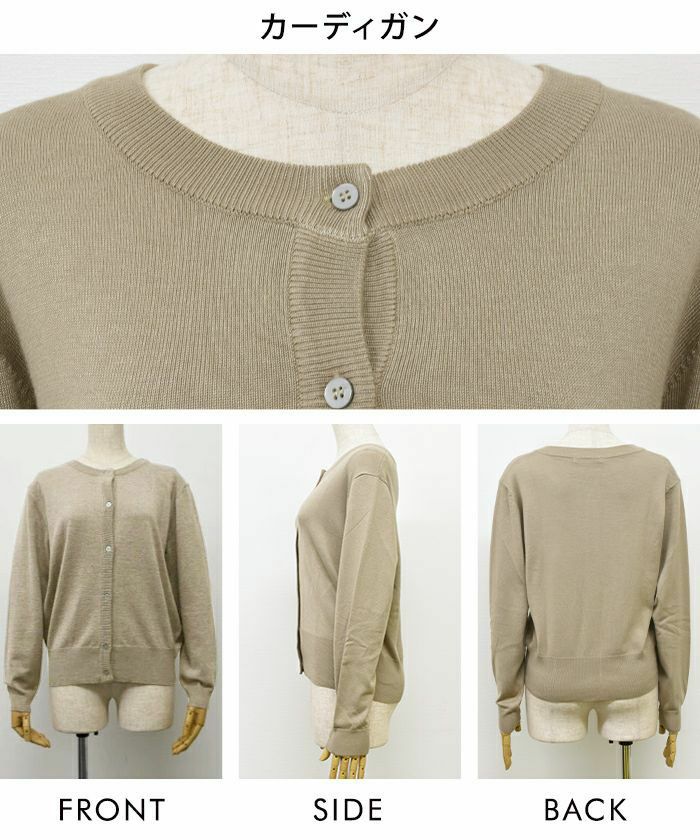 クルーネックニットカーディガン レディース 秋 冬 M L 長袖 | アクアガレージ aquagarage