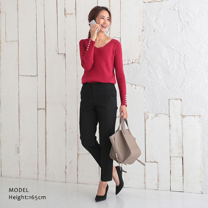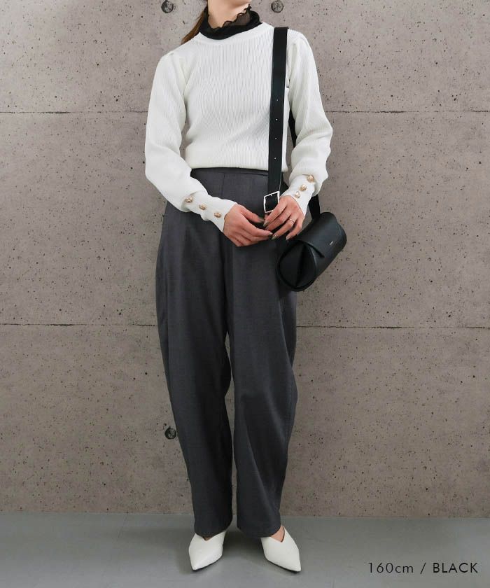 送料無料 袖口ボタンタートルネックリブニットトップス 春 秋 冬 M L レディース ≪ゆうメール便配送20・代引不可≫ | | アクアガレージ aquagarage