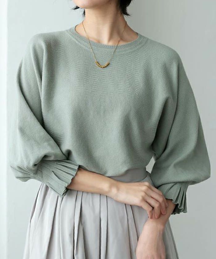 送料無料 袖口プリーツニットトップス レディース 春 秋 冬 七分袖 八分袖 長袖 M L ≪ゆうメール便配送30・代引不可≫ | アクアガレージ aquagarage