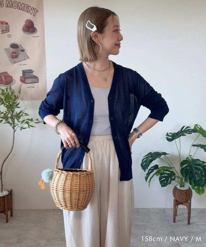 送料無料 Vネックシアーカーディガン レディース 春 夏 M 半袖 ≪ゆうメール便配送20・代引不可≫ | アクアガレージ aquagarage