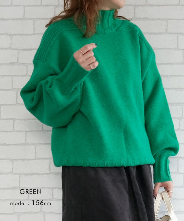 送料無料 ボトルネックパフスリーブニットトップス 秋 冬 M レディース ≪ゆうメール便配送30・代引不可≫ | アクアガレージ aquagarage