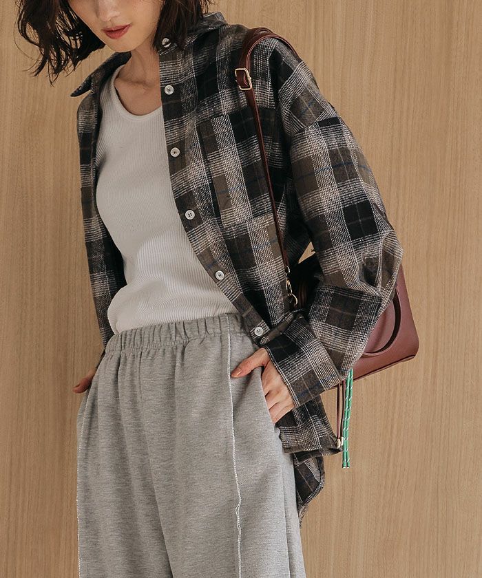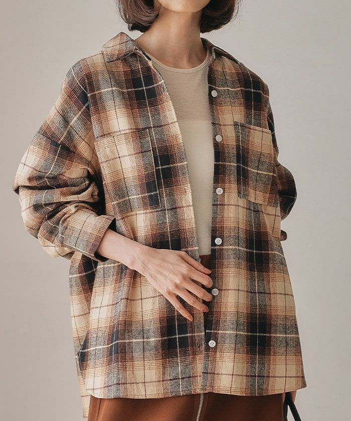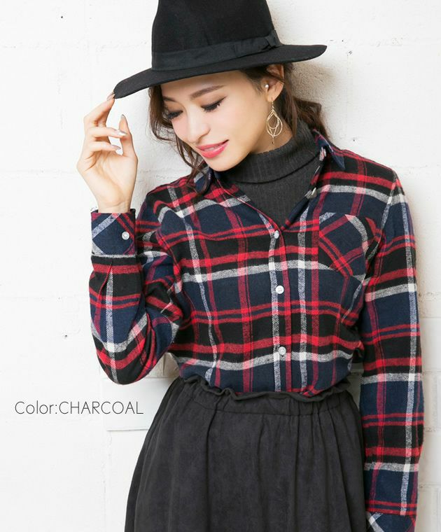 送料無料 バンドカラーフランネルブラウス 春 秋 冬 ≪ゆうメール便配送30・代引不可≫| アクアガレージ aquagarage aquagarage