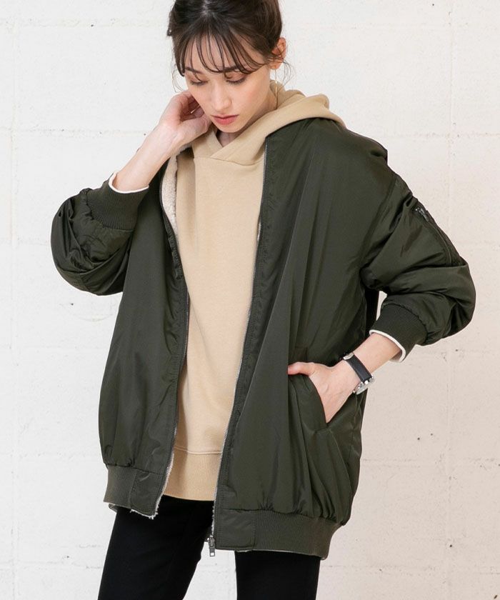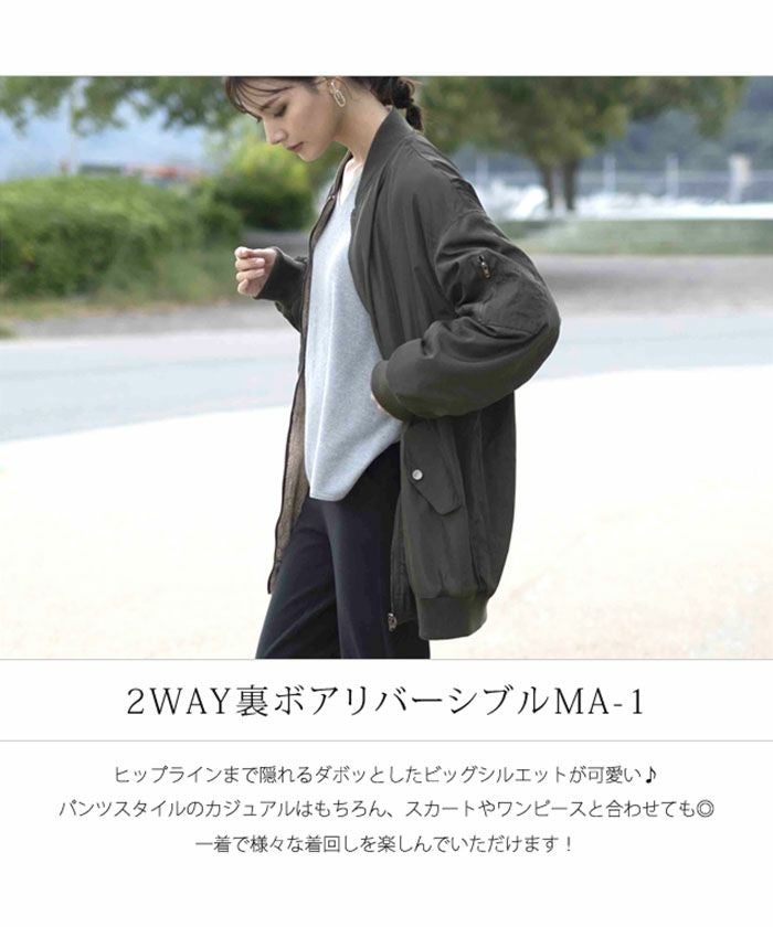 送料無料 リバーシブルMA-1裏ボアブルゾン レディース ロング丈 長袖 M | アクアガレージ aquagarage
