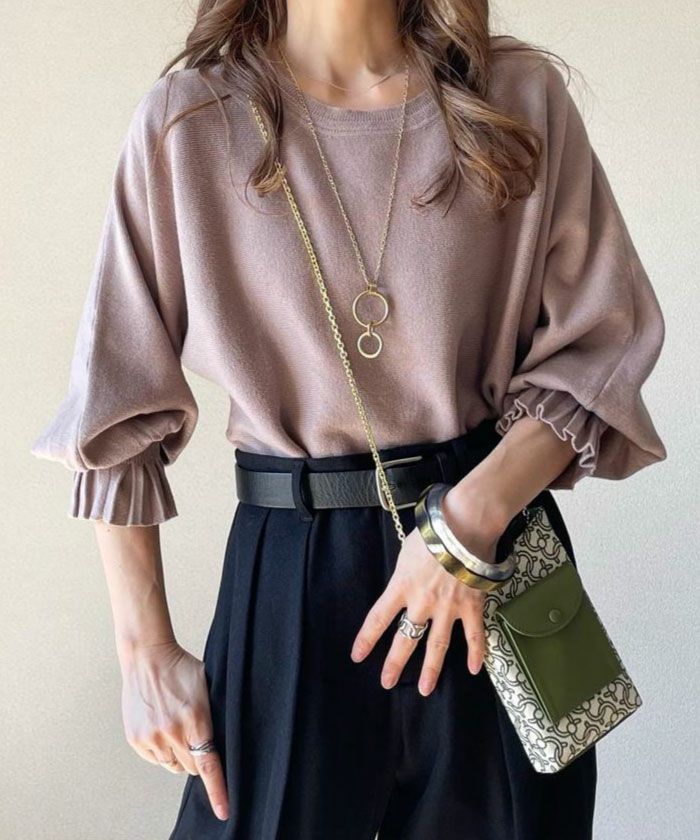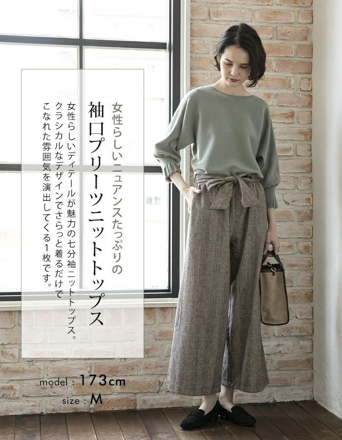 送料無料 袖口プリーツニットトップス レディース 春 秋 冬 七分袖 八分袖 長袖 M L ≪ゆうメール便配送30・代引不可≫ | アクアガレージ aquagarage