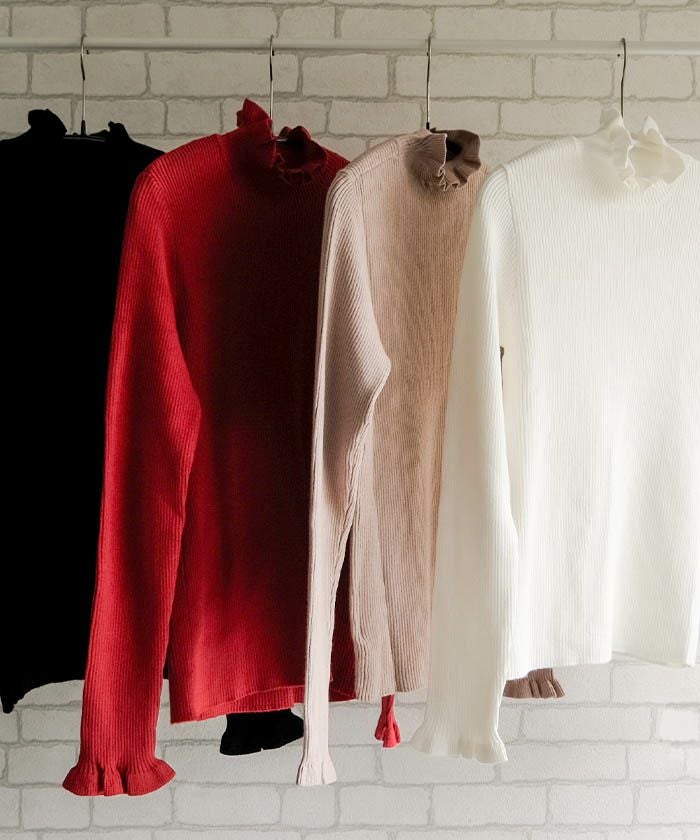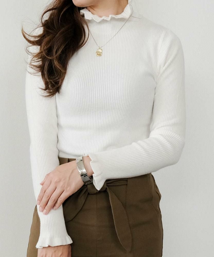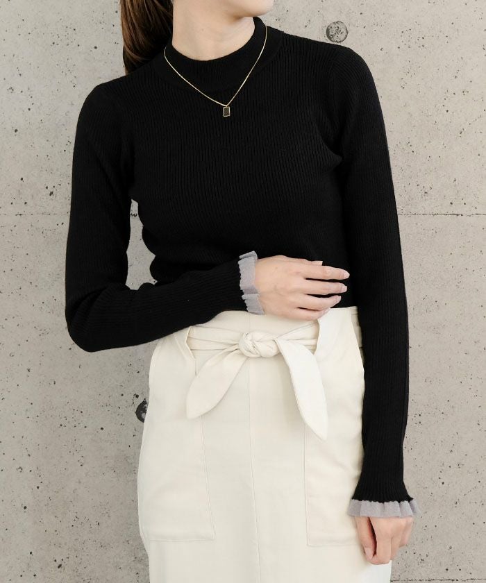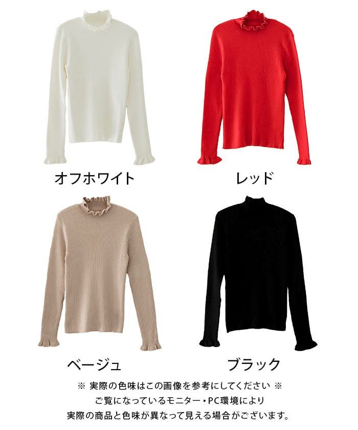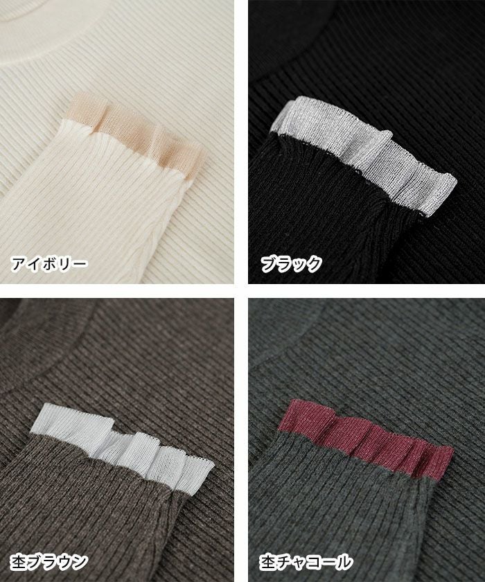 送料無料 ネック袖口フリルニットトップス 春 秋 冬 M L レディース ≪ゆうメール便配送30・代引不可≫ | | アクアガレージ aquagarage