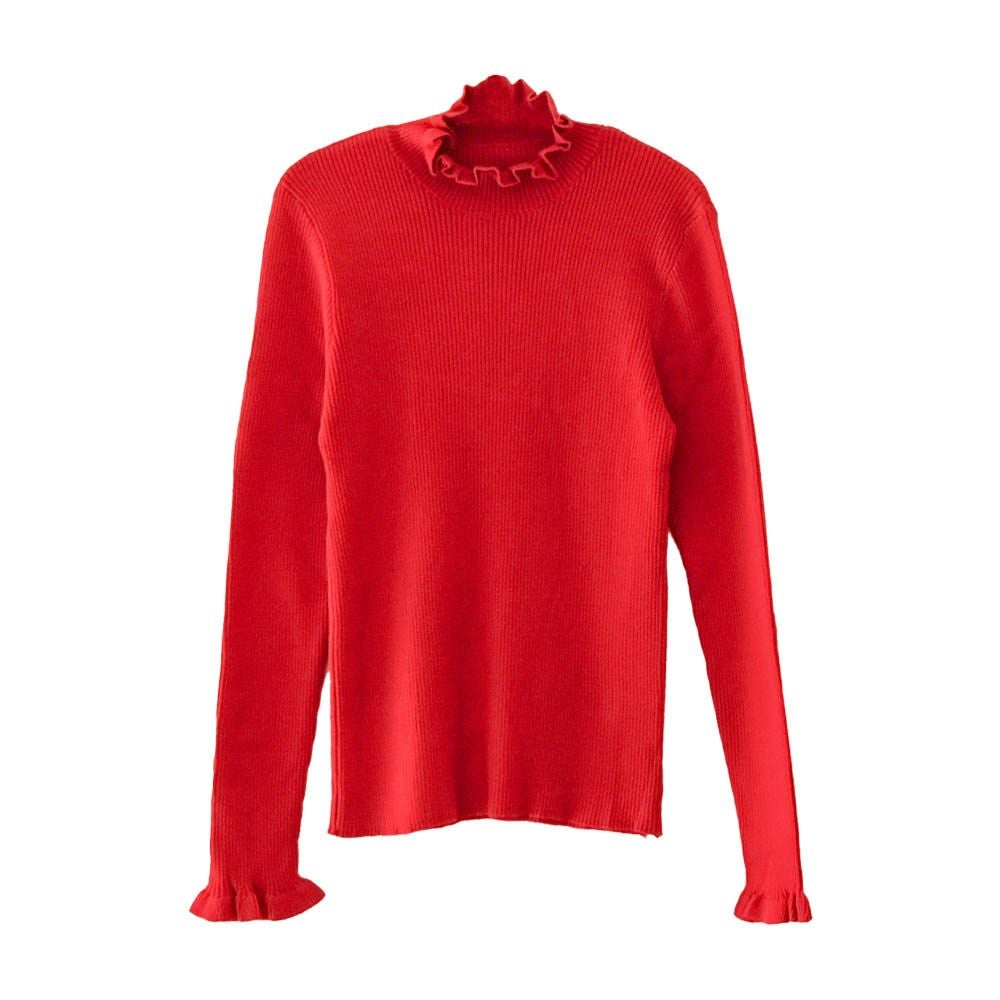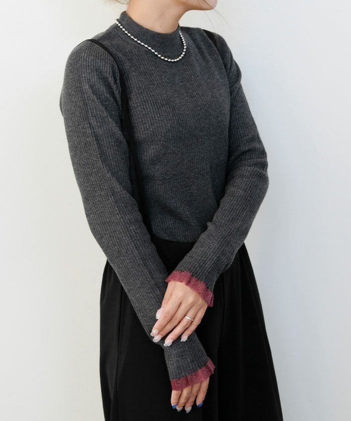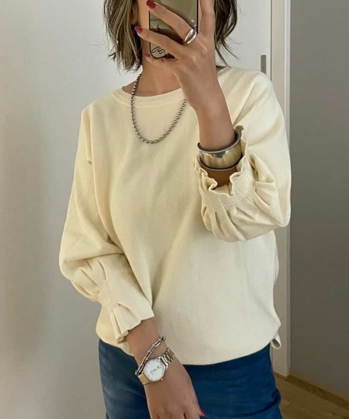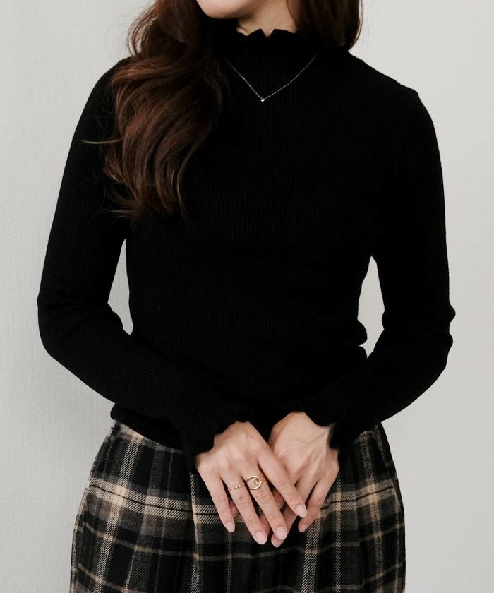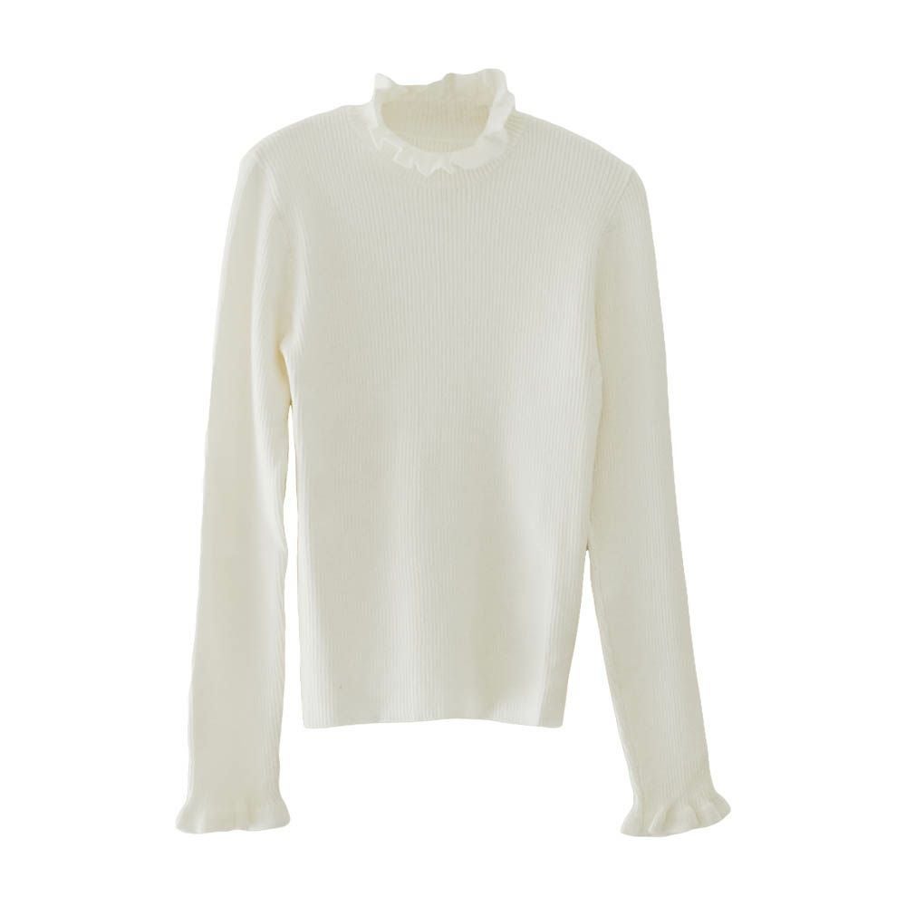 送料無料 ネック袖口フリルニットトップス 春 秋 冬 M L レディース ≪ゆうメール便配送30・代引不可≫ | | アクアガレージ aquagarage