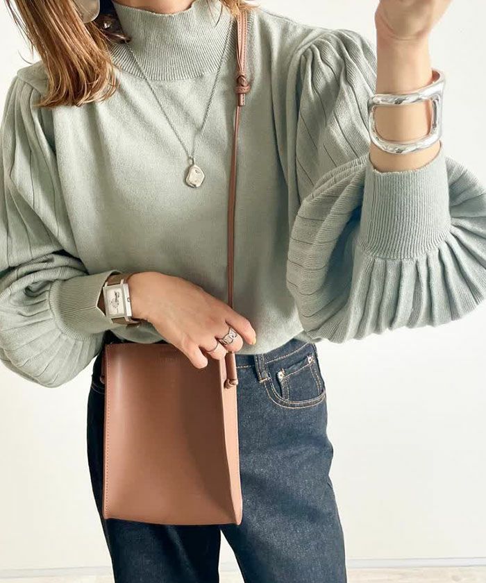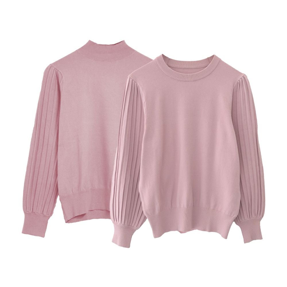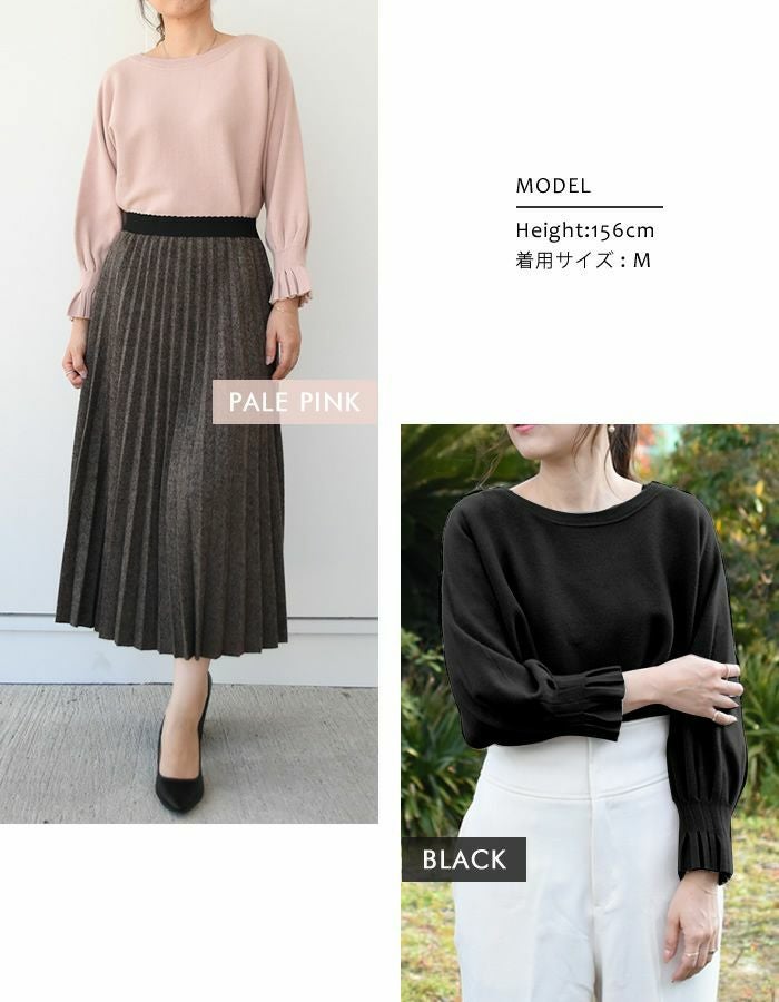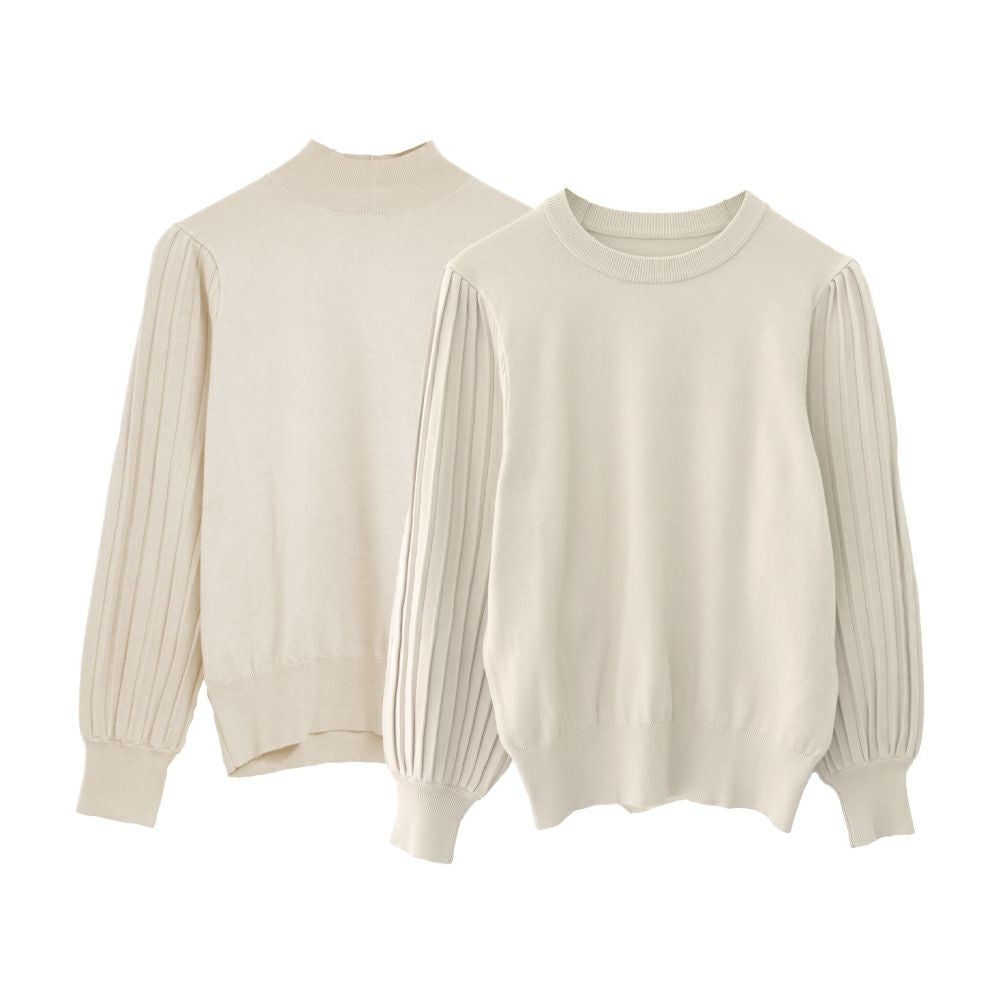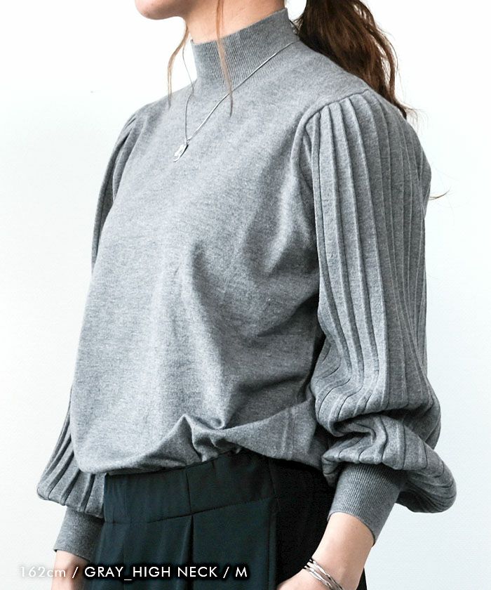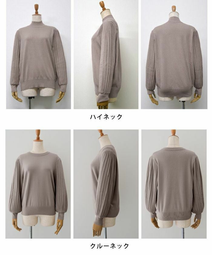 送料無料 ネックタイプが選べるプリーツ袖ニット レディース 春 秋 ≪ゆうメール便配送30・代引不可≫ | アクアガレージ aquagarage