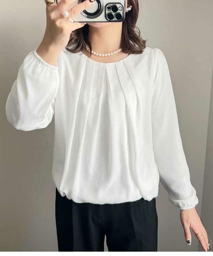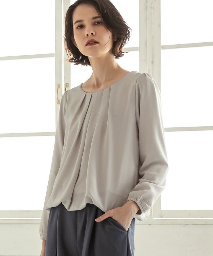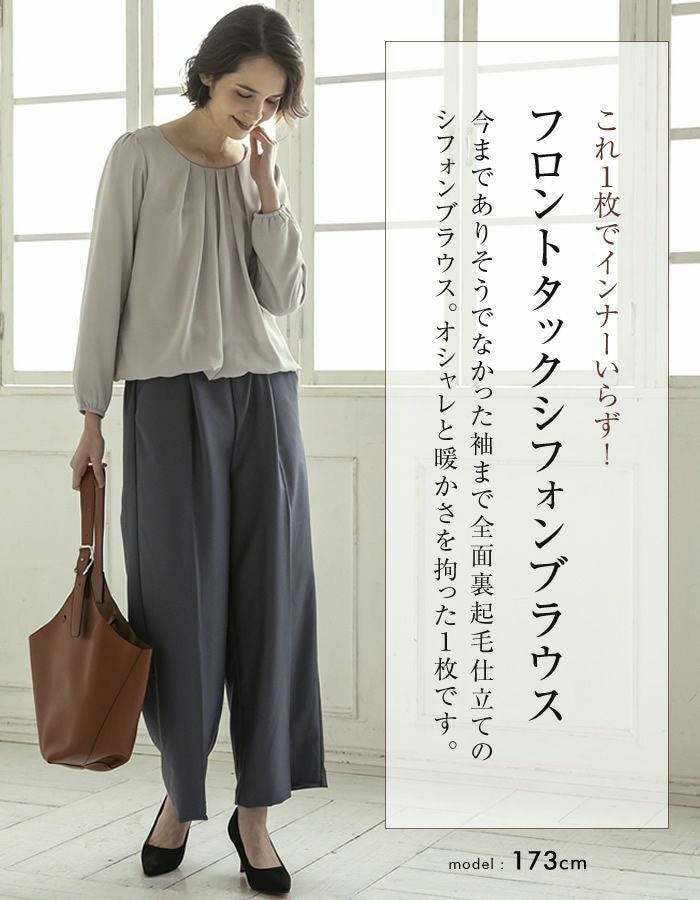 送料無料 フロントタック裏起毛シフォンブラウス レディース 秋 冬 S M L LL 3L 長袖 ≪ゆうメール便配送30・代引不可≫ | アクアガレージ aquagarage