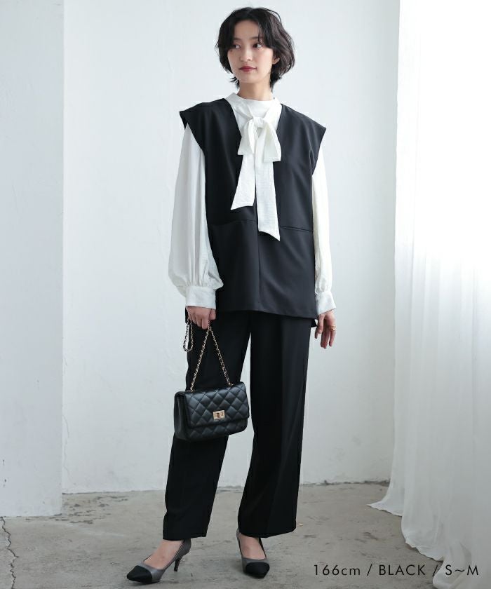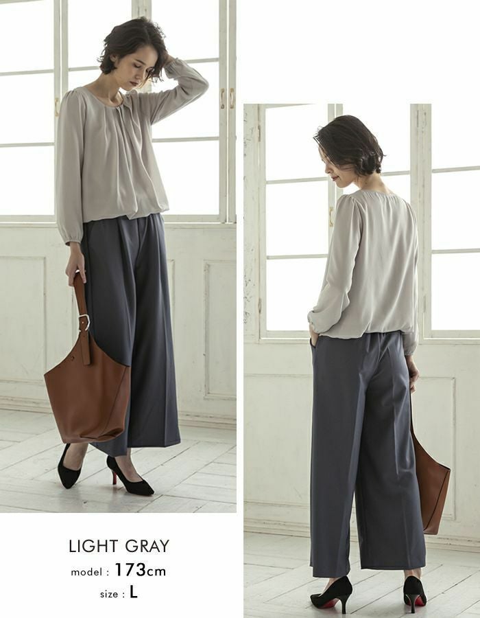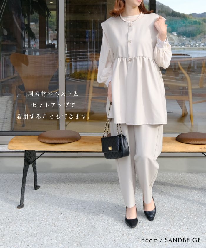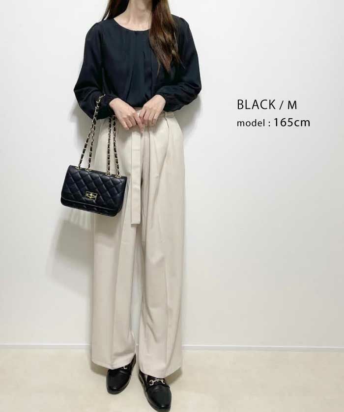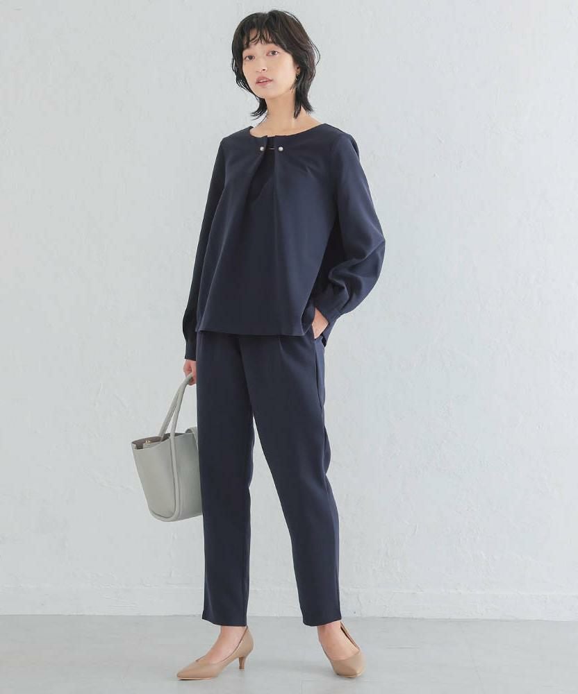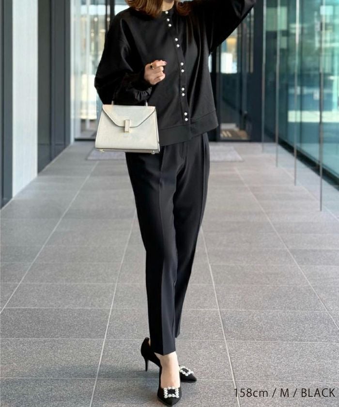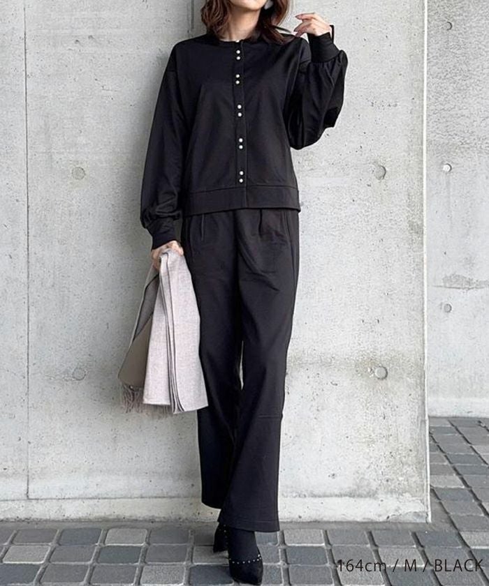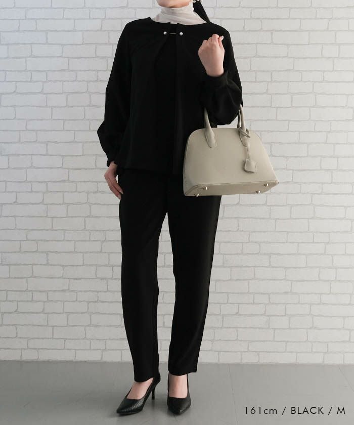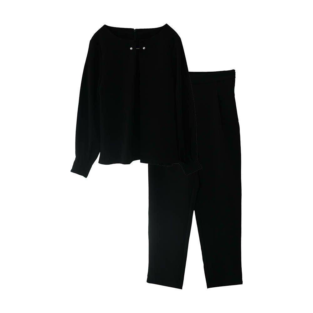 送料無料 パール付きブラウスパンツセットアップ レディース 春 秋 長袖 M L | アクアガレージ aquagarage