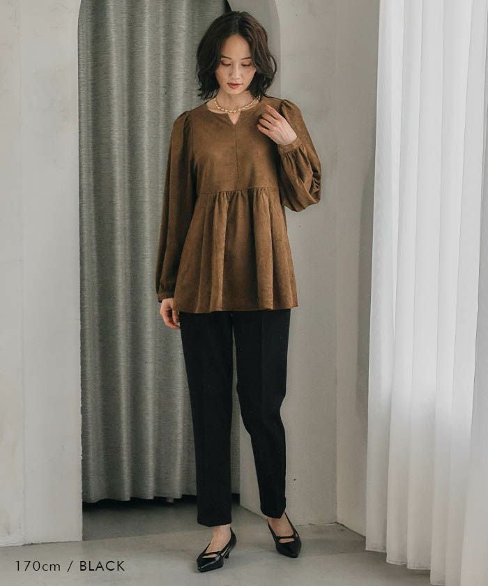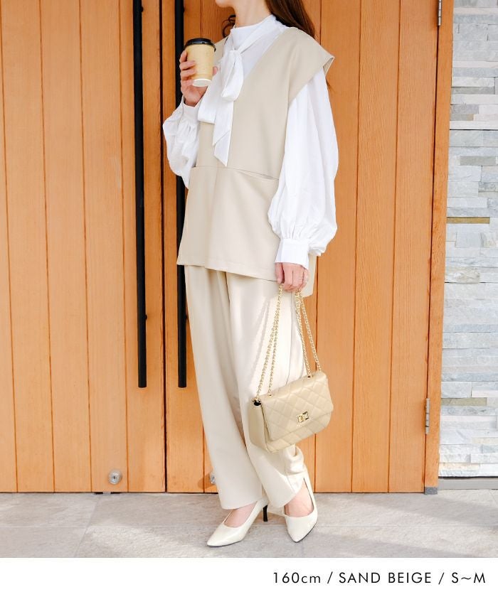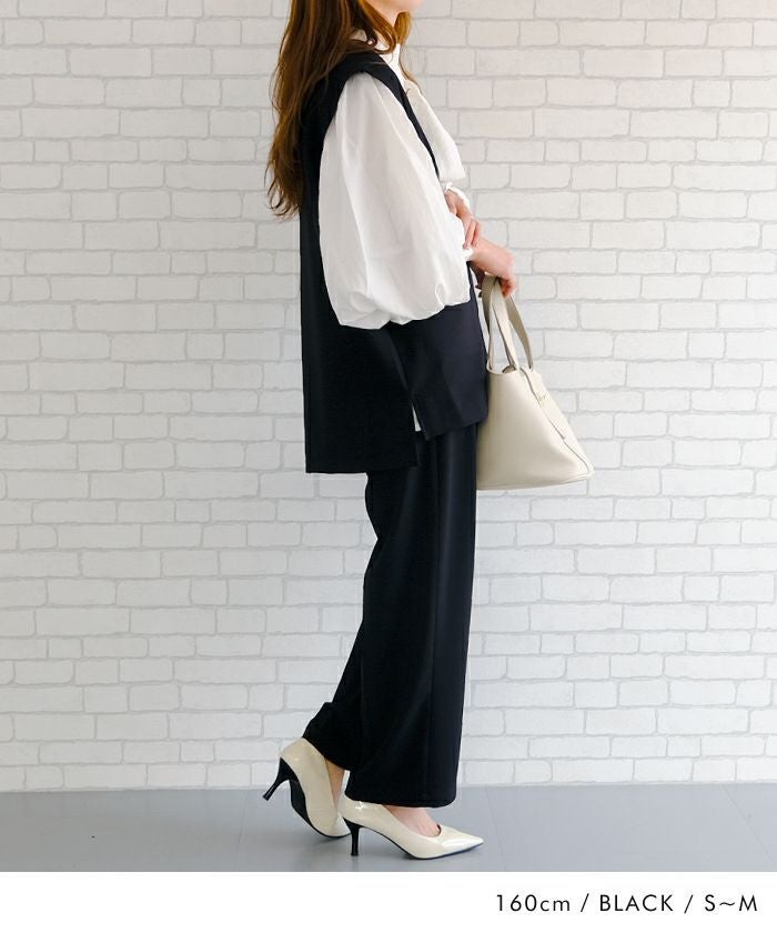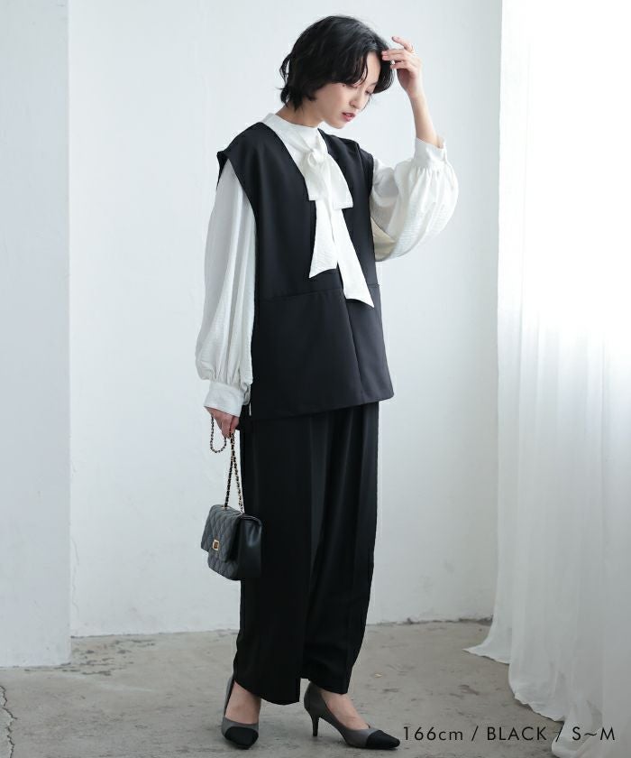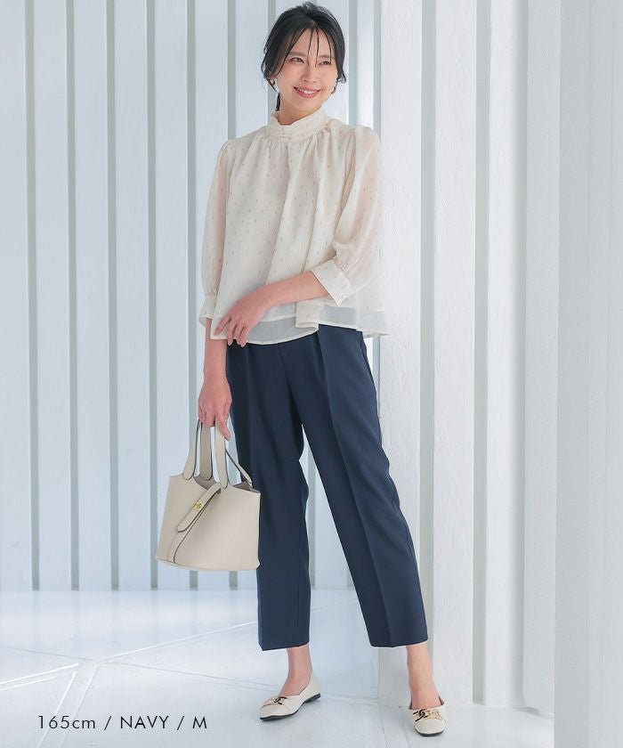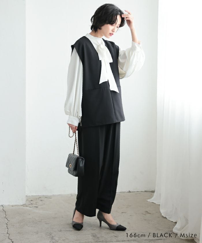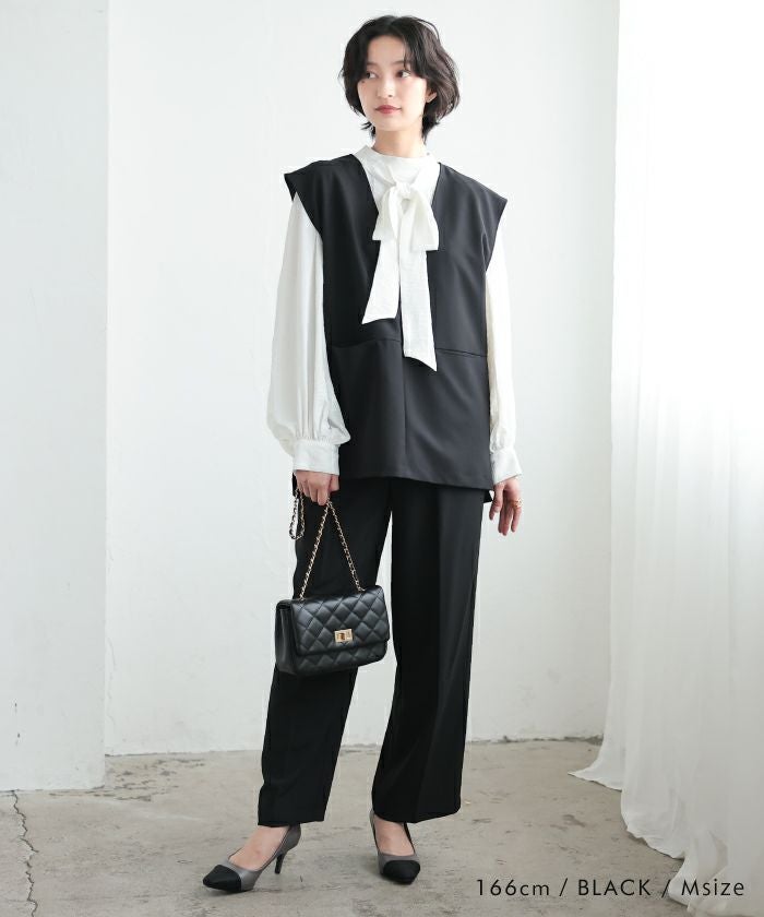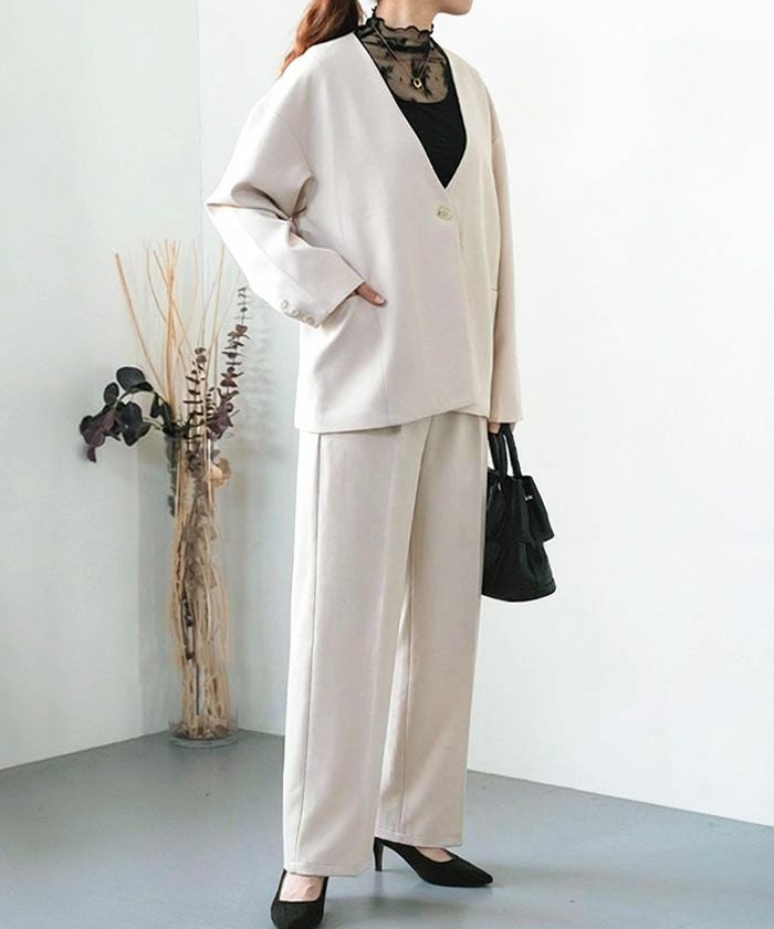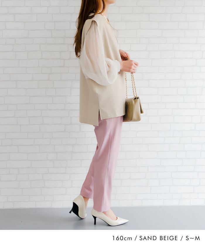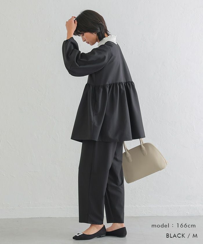 送料無料 パール付きブラウスパンツセットアップ レディース 春 秋 長袖 M L | アクアガレージ aquagarage