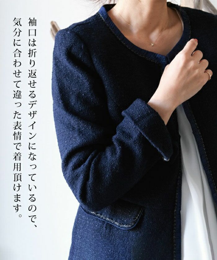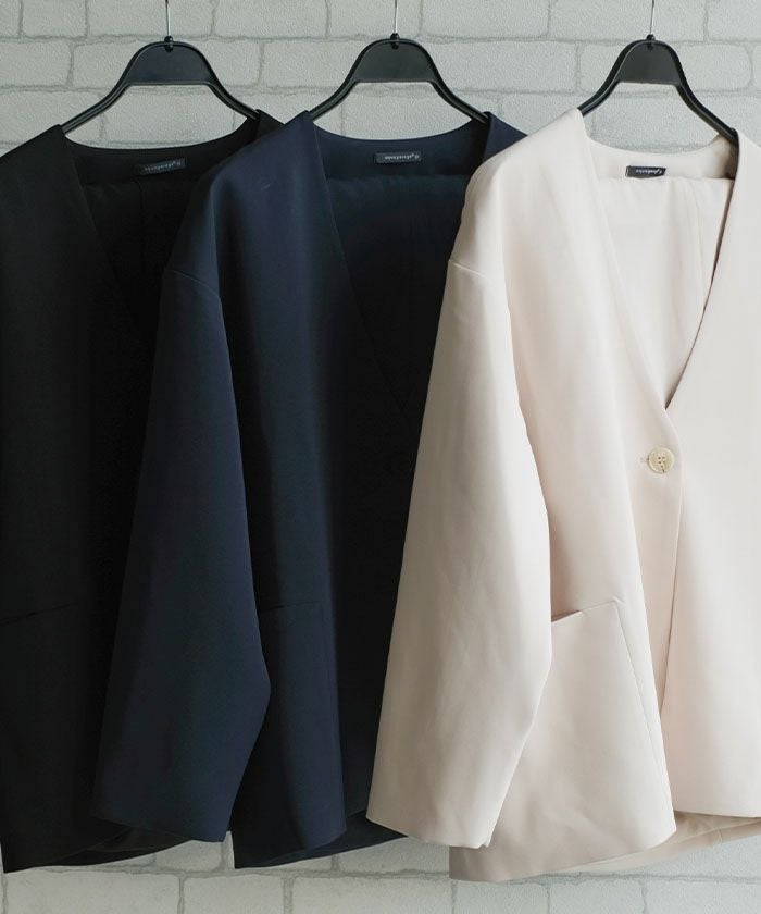 送料無料 ノーカラージャケット レディース 春 秋 冬 長袖 M L | アクアガレージ aquagarage