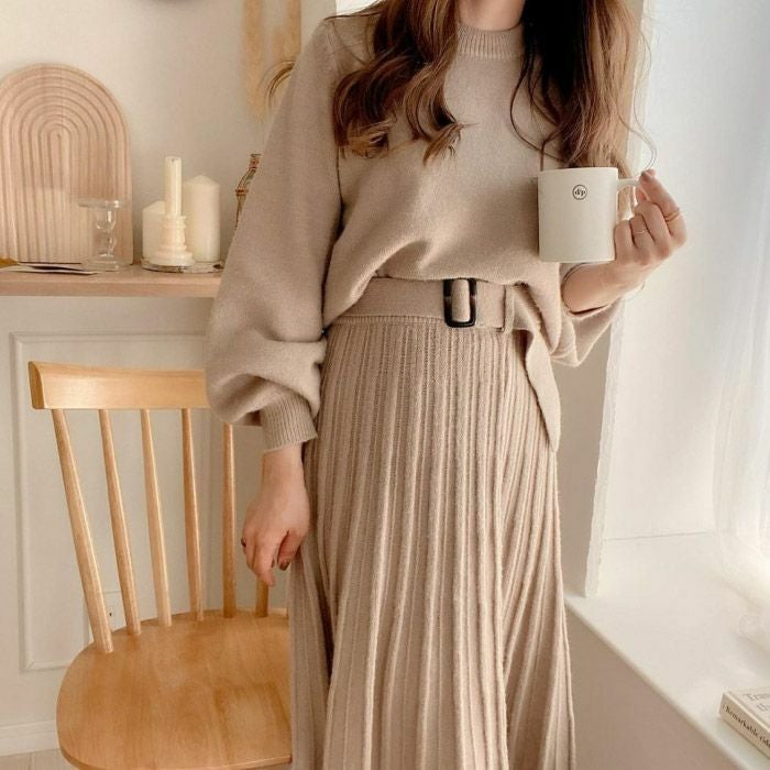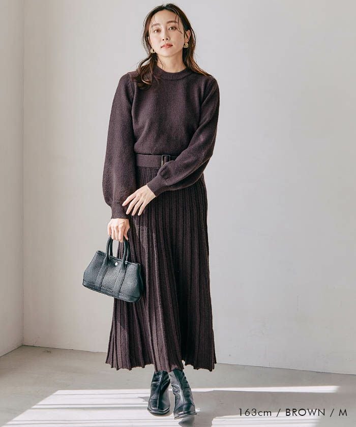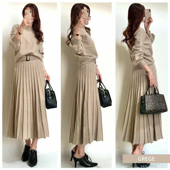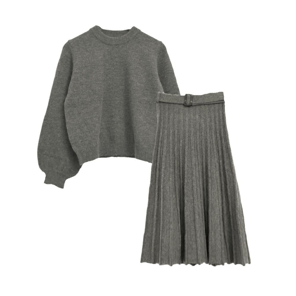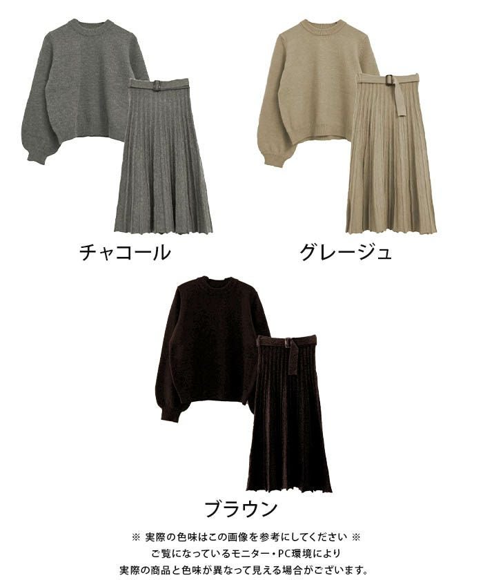 送料無料 ベルト付きニットセットアップ レディース 秋 冬 長袖 3点セット | アクアガレージ aquagarage