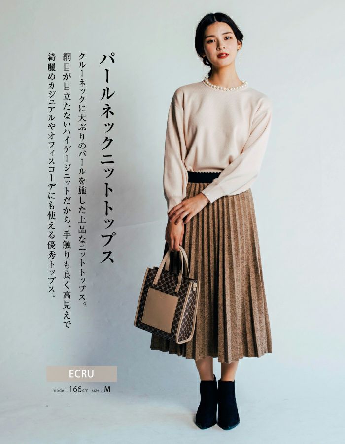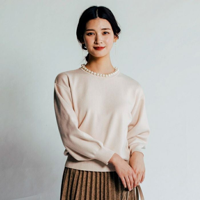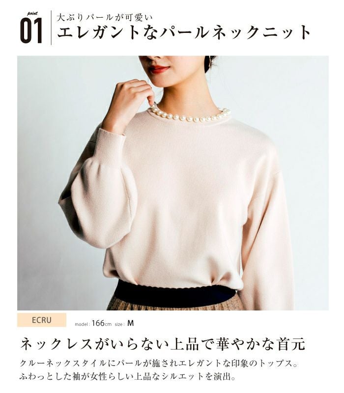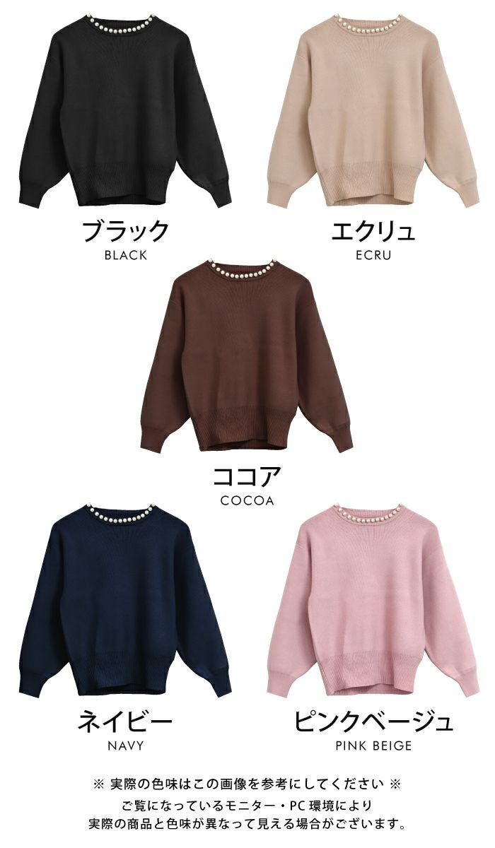 送料無料 パールネックニットトップス レディース 秋 冬 長袖 M L | アクアガレージ aquagarage