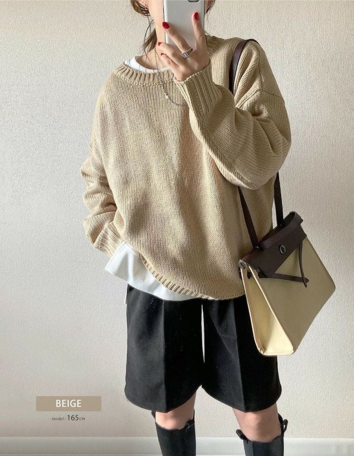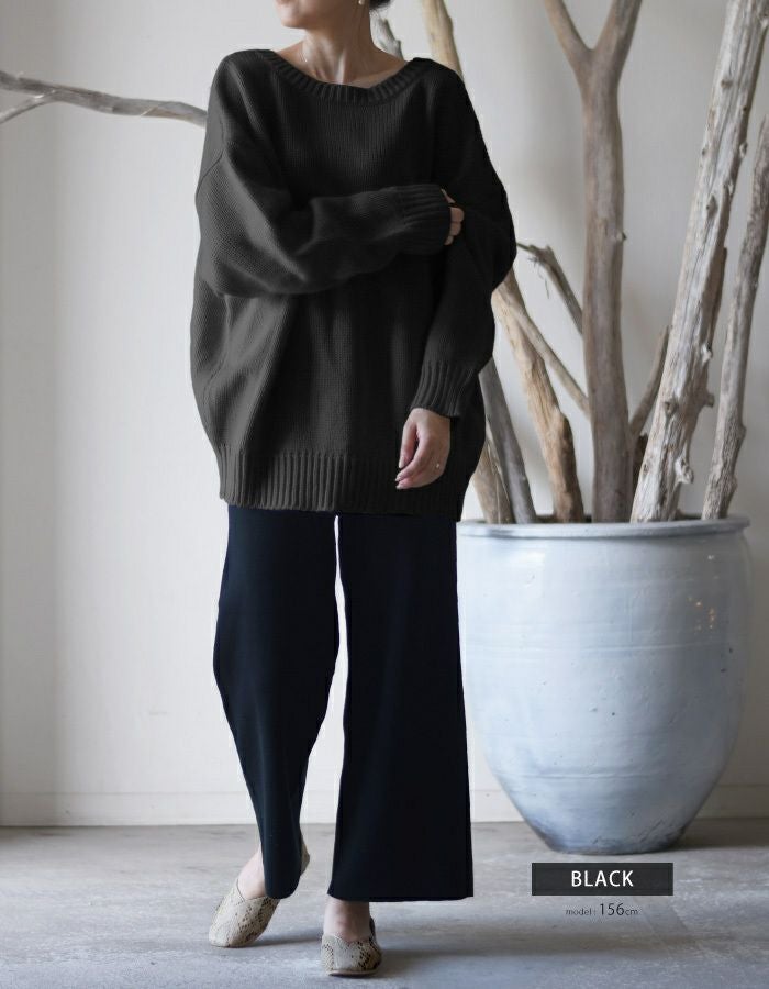 ダンボールニット裾ドロストトップス 春 秋 冬 M L レディース | アクアガレージ aquagarage