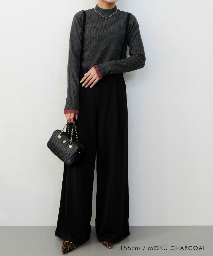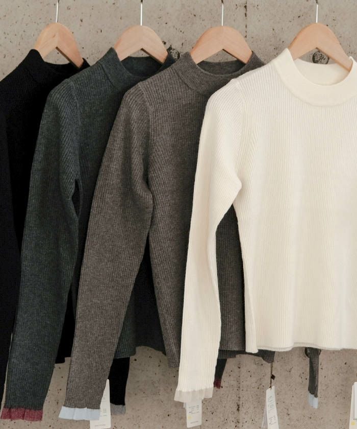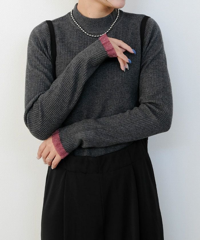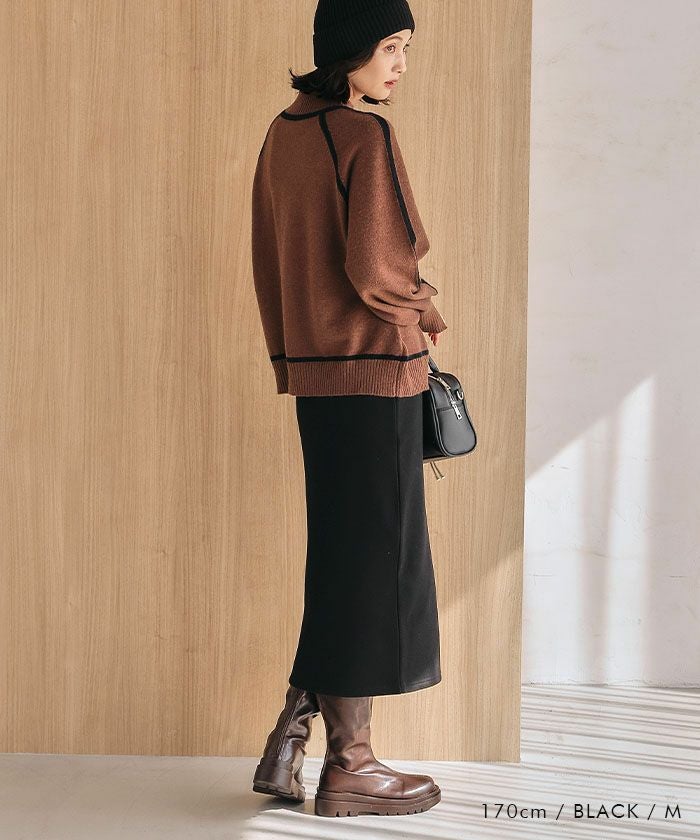 送料無料 ボトルネック配色リブニットトップス 春 秋 冬 M レディース ≪ゆうメール便配送30・代引不可≫ | | アクアガレージ aquagarage