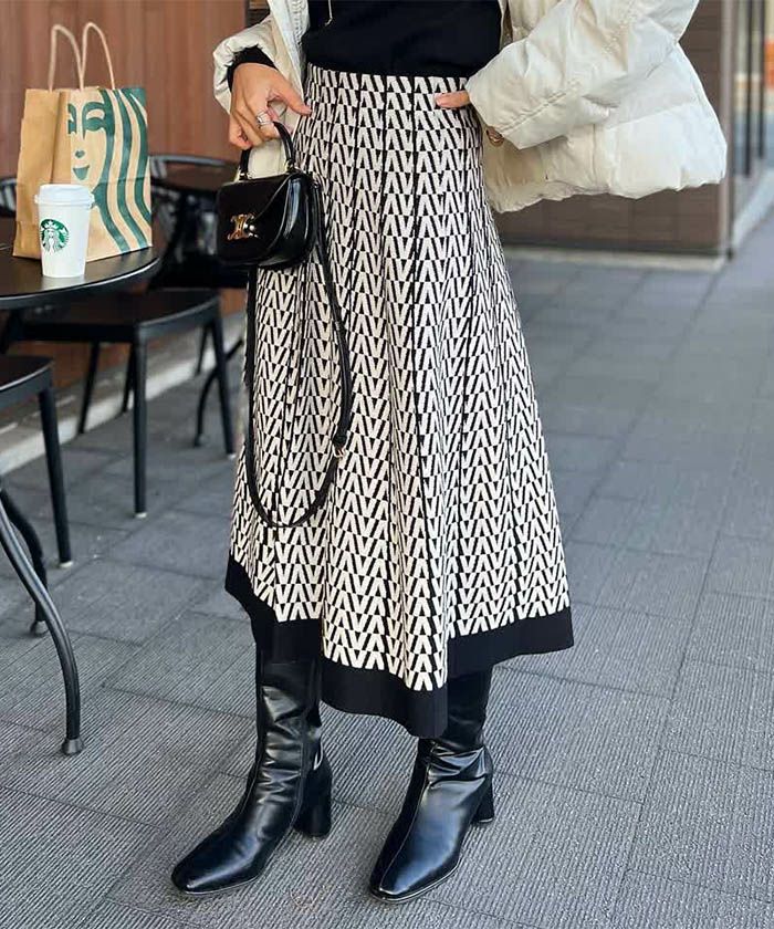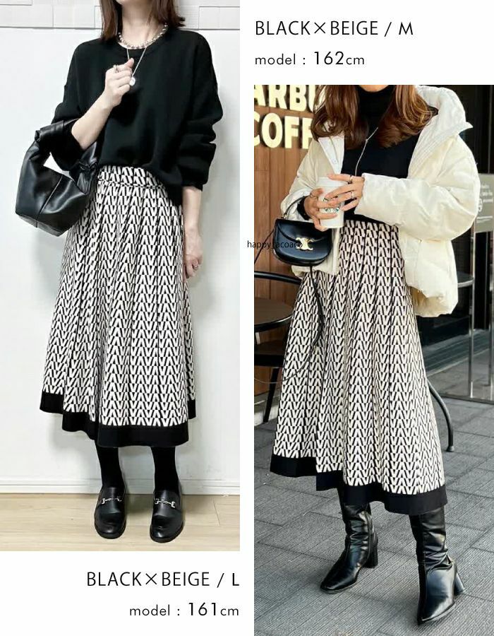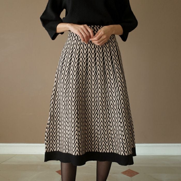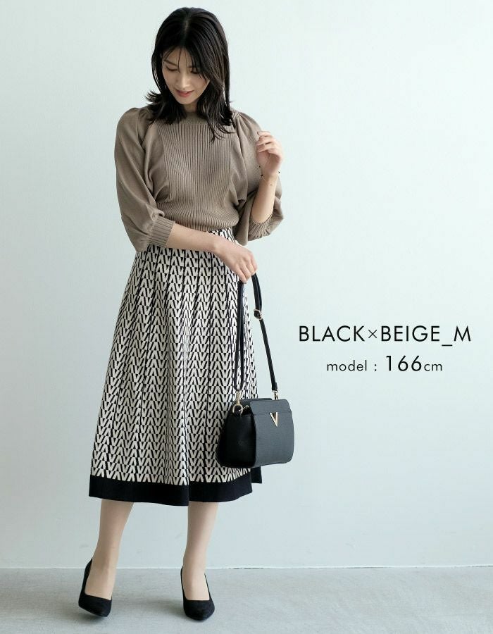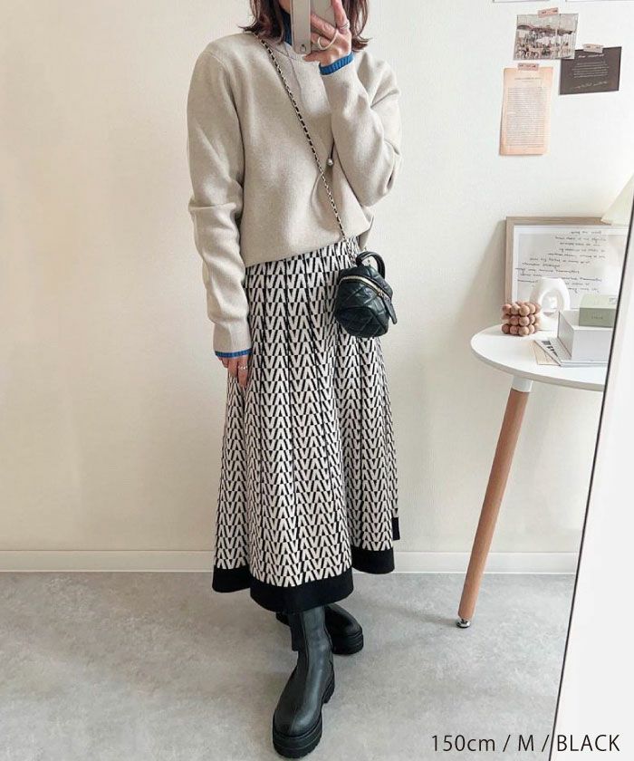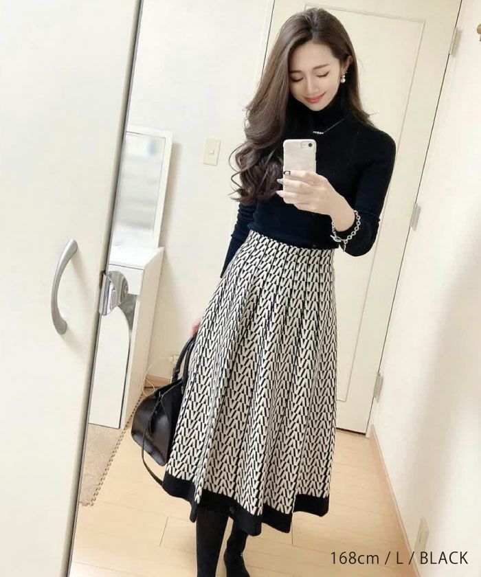 幾何学柄ニットフレアスカート レディース 秋 冬 M L | アクアガレージ aquagarage