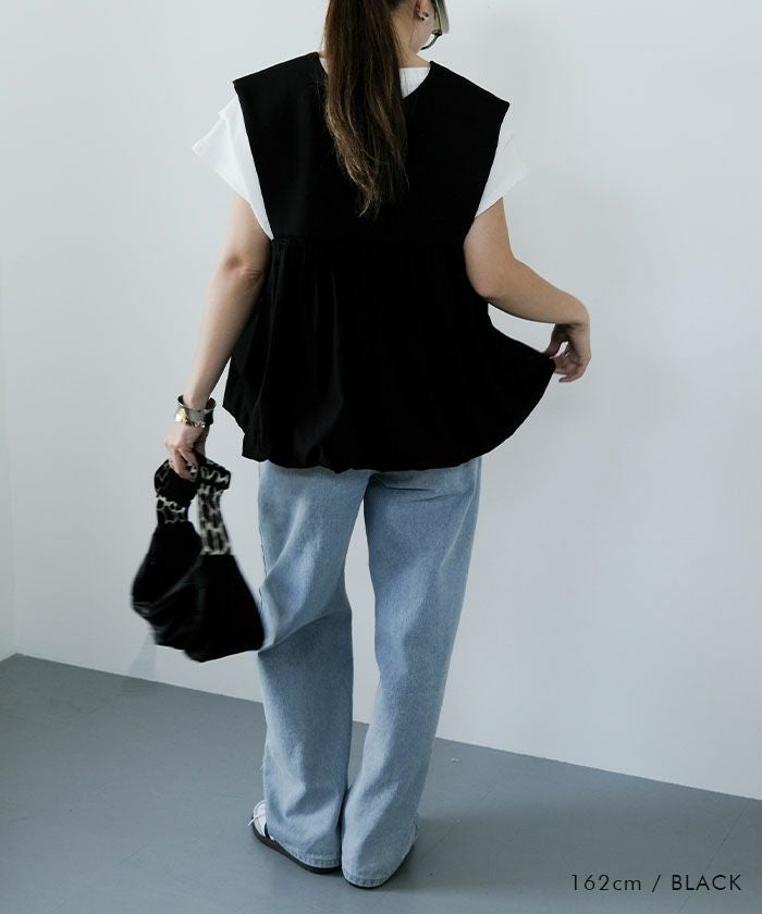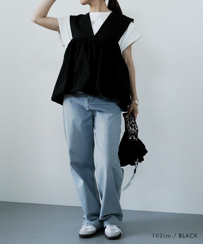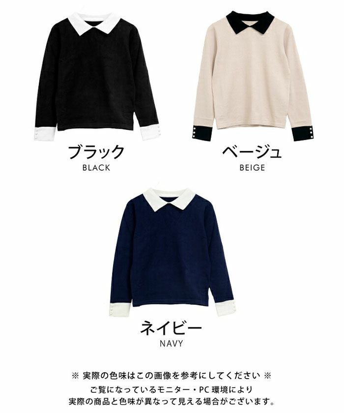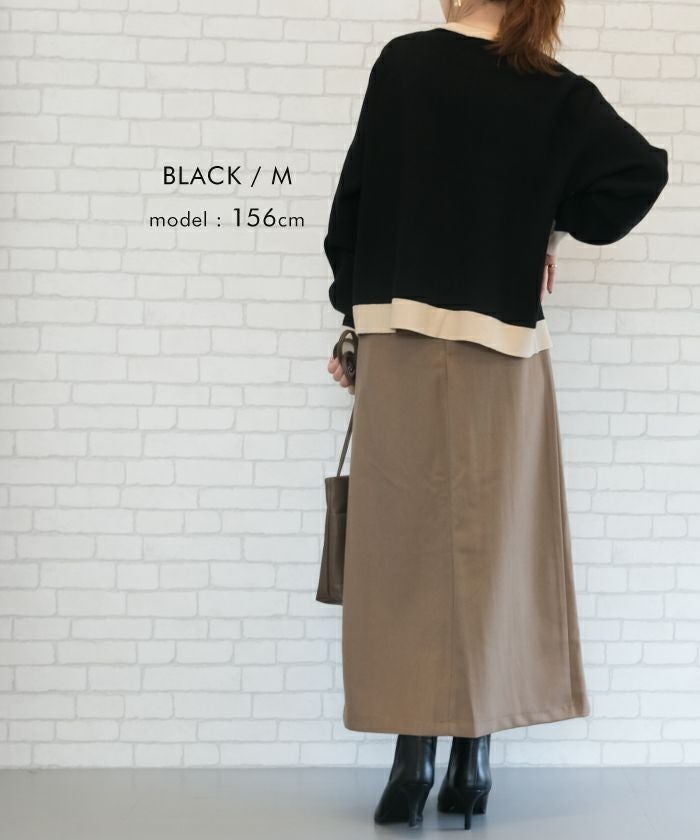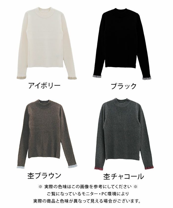 送料無料 レイヤード風リブニットトップス 春 秋 冬 M L レディース ≪ゆうメール便配送30・代引不可≫ | | アクアガレージ aquagarage