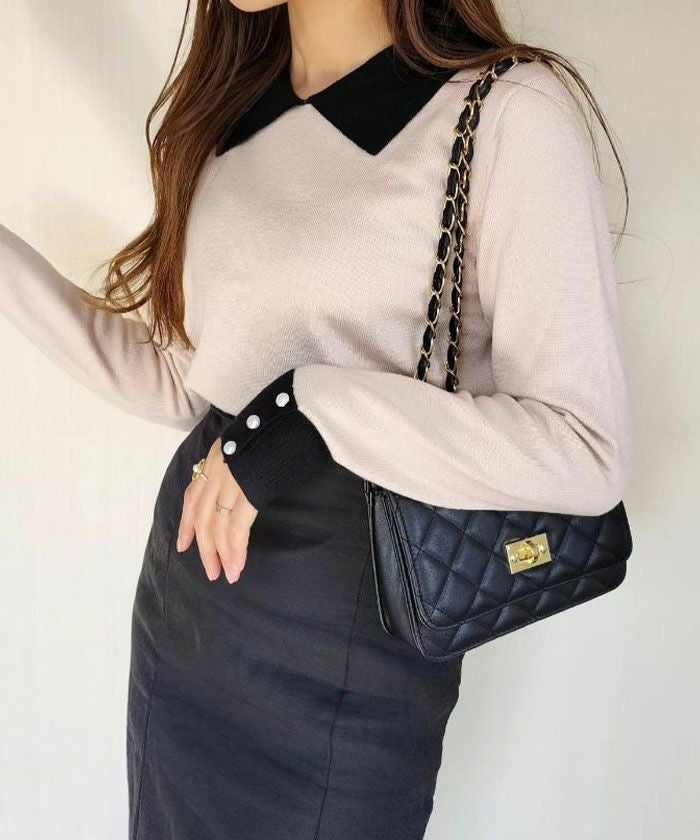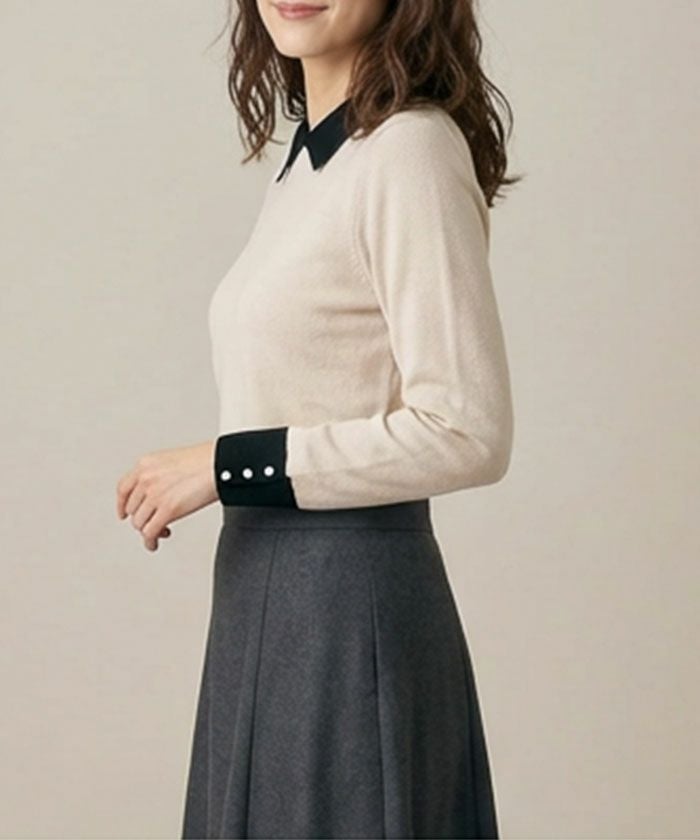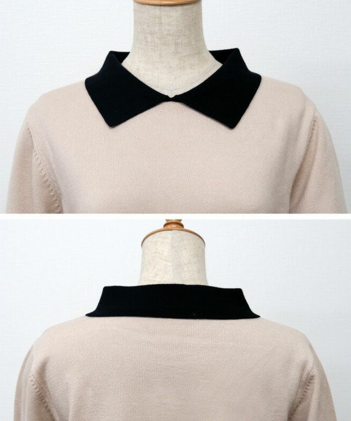 送料無料 ポイントパール襟付きニット レディース 春 秋 冬 M L 長袖 ≪ゆうメール便配送30・代引不可≫ | アクアガレージ aquagarage