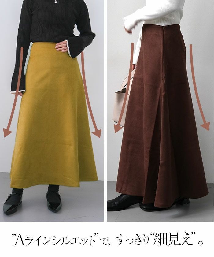 スエードフレアロングスカート レディース 春 秋 冬 ロング丈 S M L ≪ゆうメール便配送30・代引不可≫ | アクアガレージ aquagarage