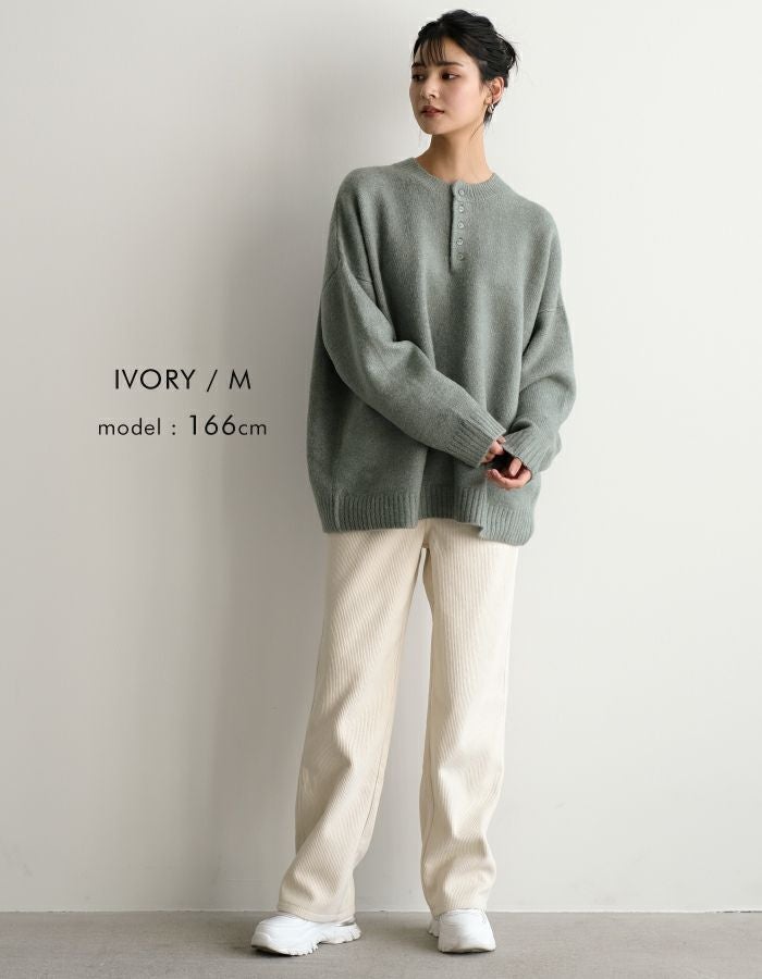送料無料 フライスリブ袖口フリルヘンリーネックトップス 春 秋 冬 M レディース ≪ゆうメール便配送20・代引不可≫ | | アクアガレージ aquagarage