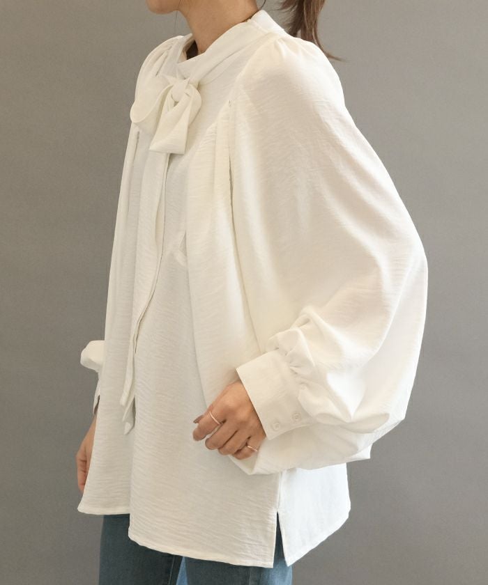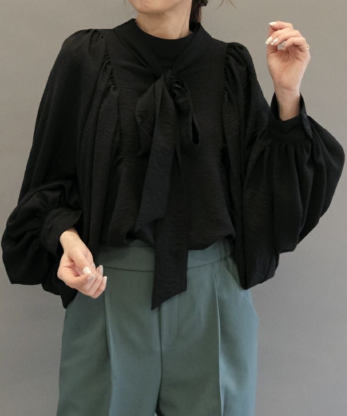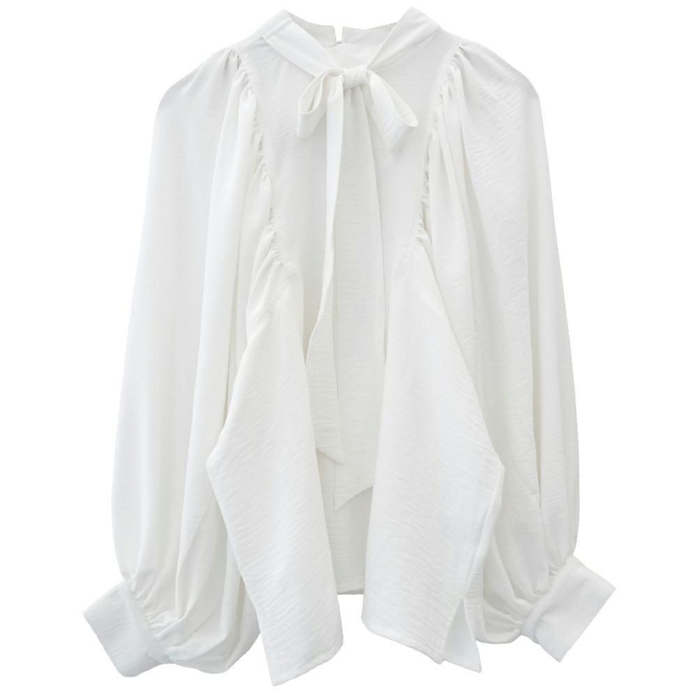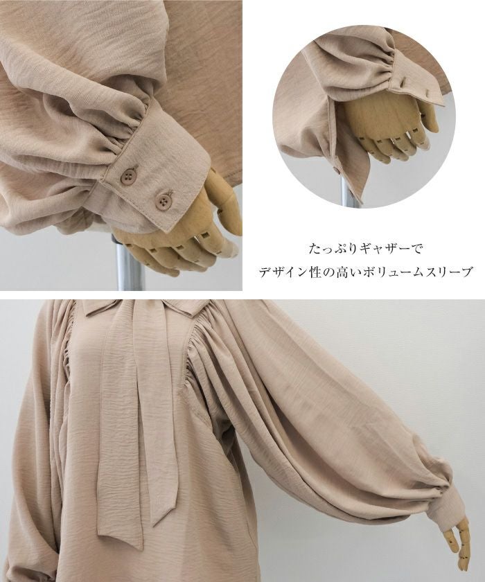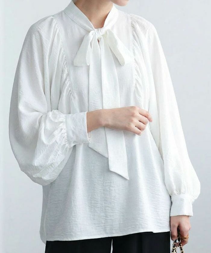 送料無料 ギャザースリーブボウタイブラウス レディース 春 夏 秋 M ≪ゆうメール便配送20・代引不可≫ | アクアガレージ aquagarage