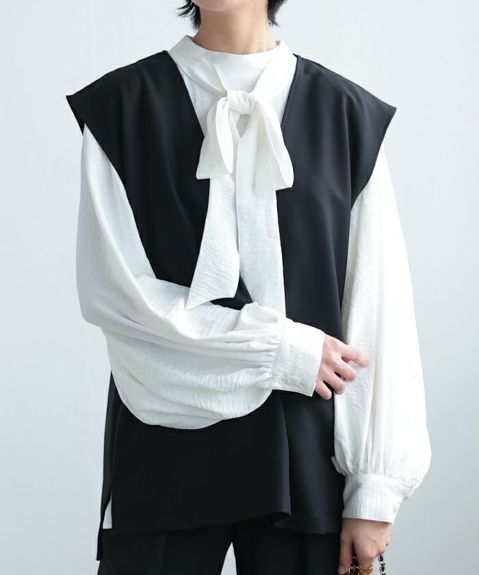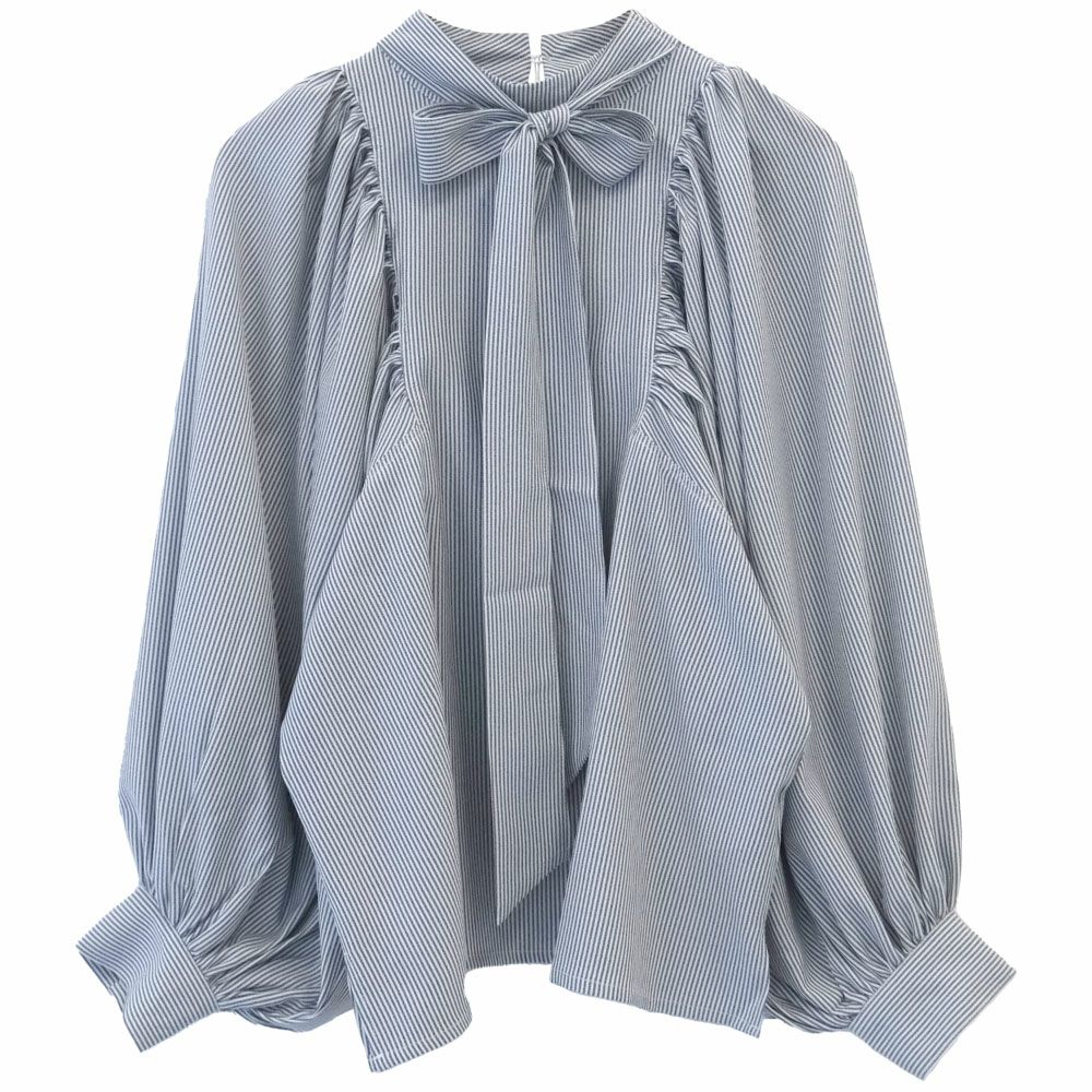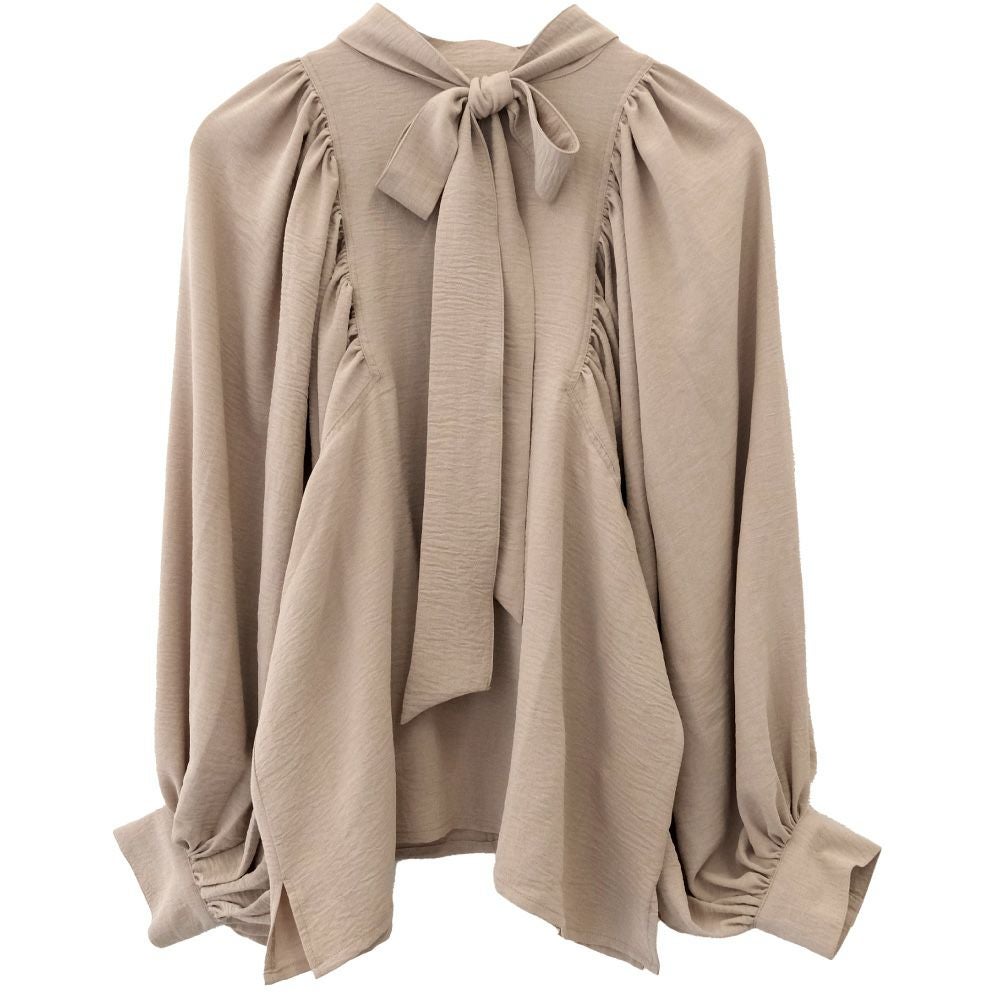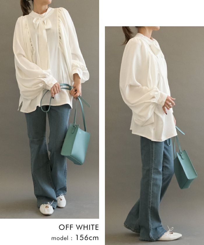 送料無料 ギャザースリーブボウタイブラウス レディース 春 夏 秋 M ≪ゆうメール便配送20・代引不可≫ | アクアガレージ aquagarage