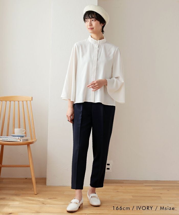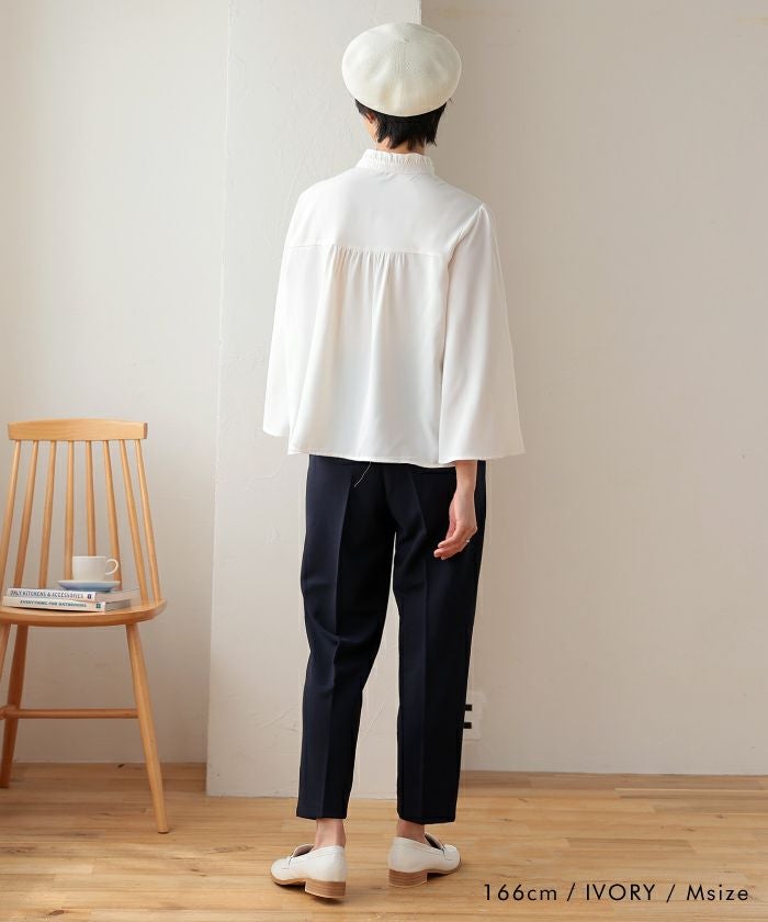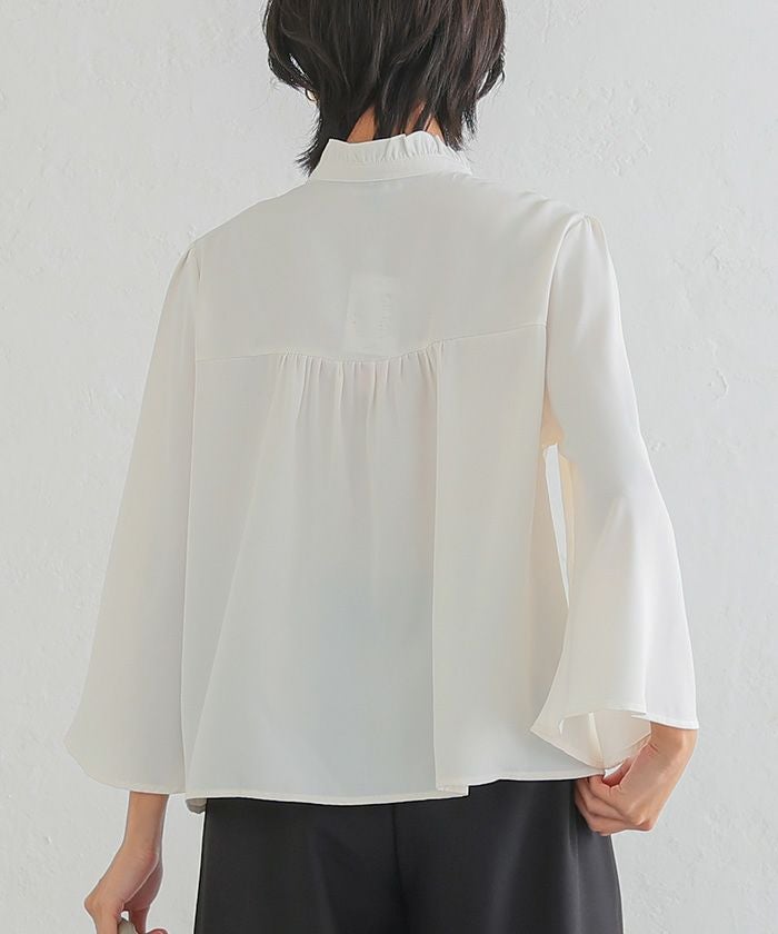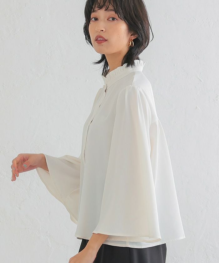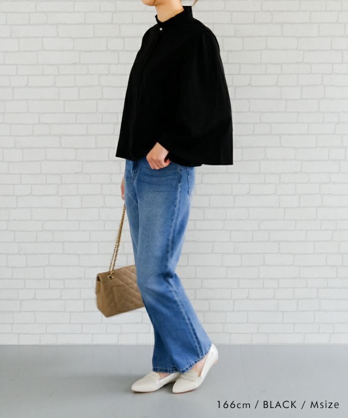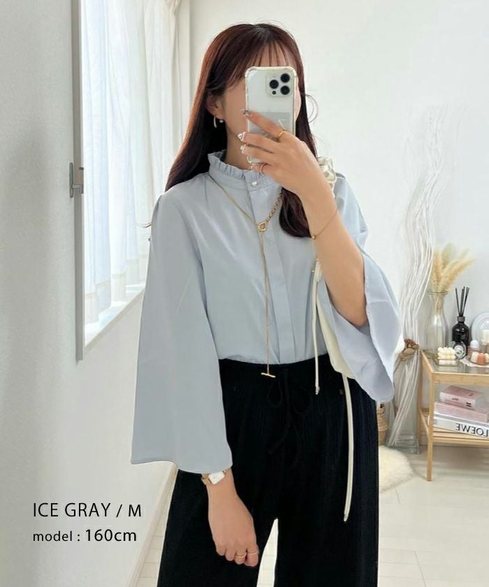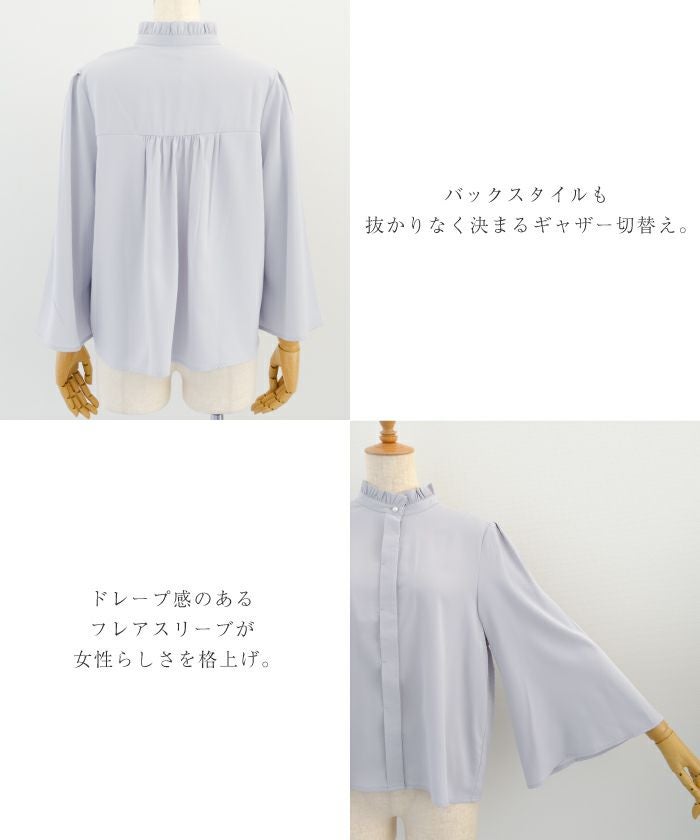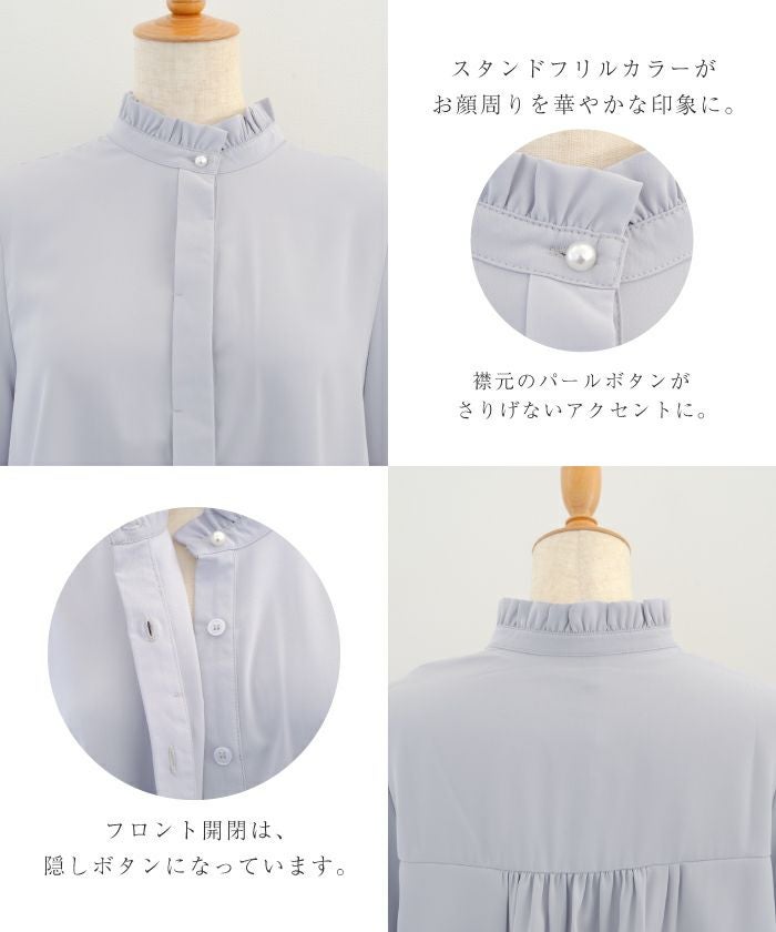 送料無料 スタンドフリルカラーブラウス レディース 春 秋 長袖 M L ≪ゆうメール便配送20・代引不可≫ | アクアガレージ aquagarage