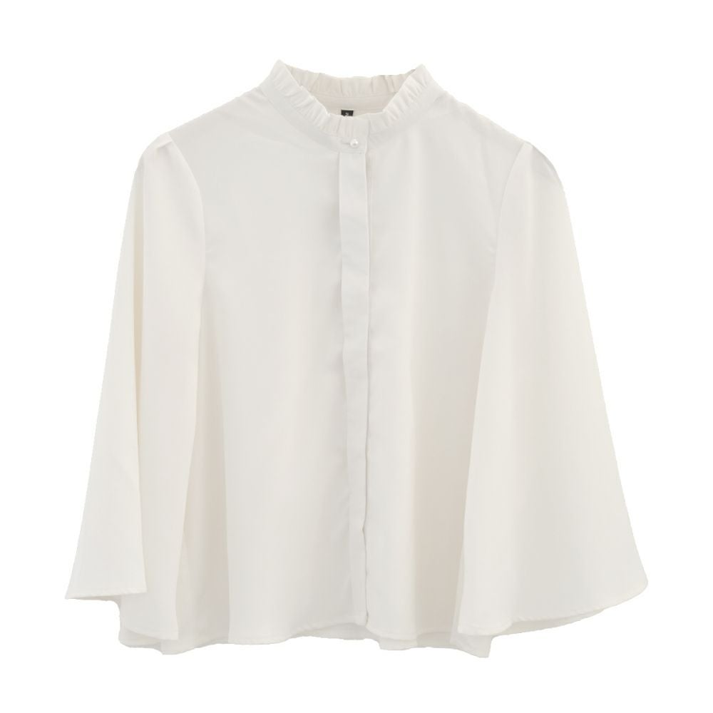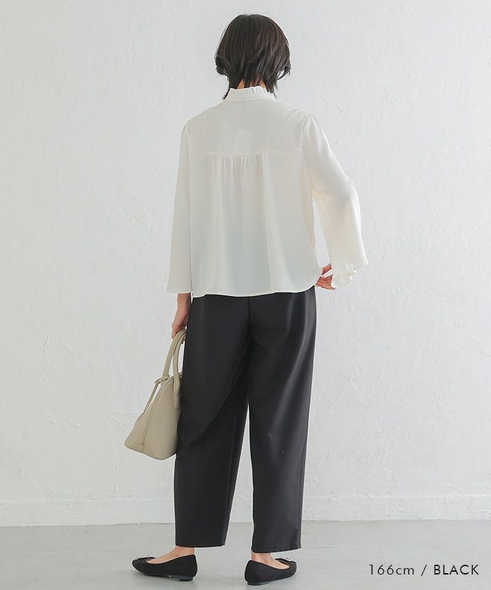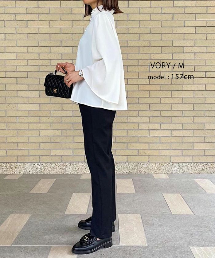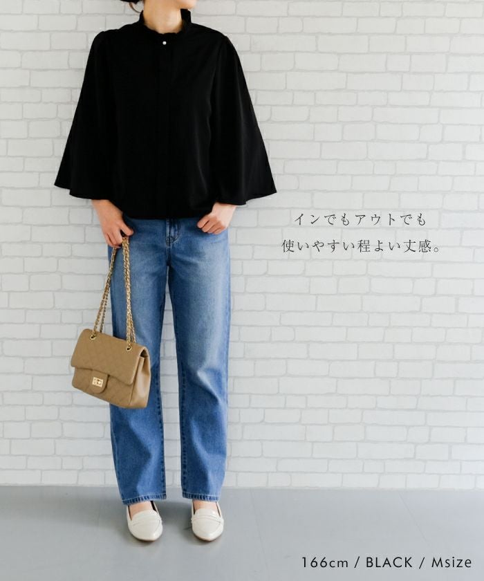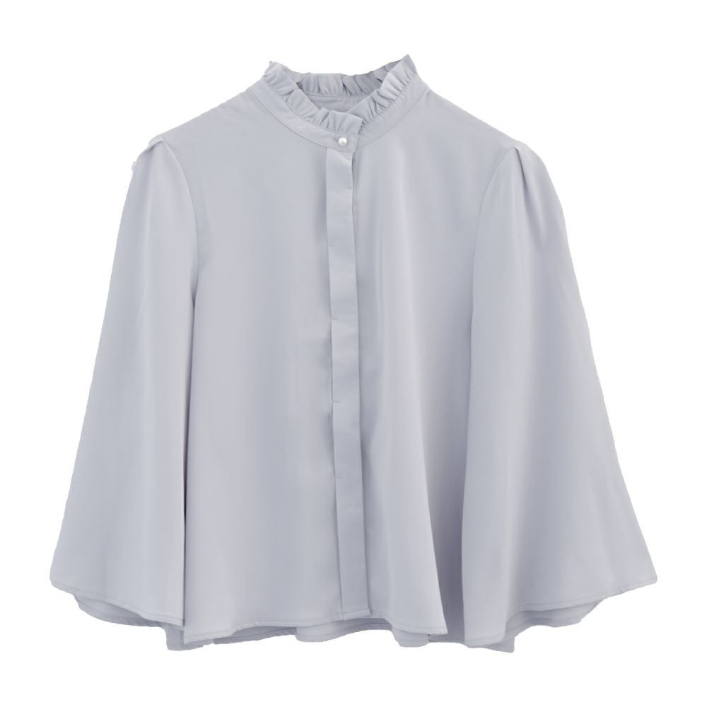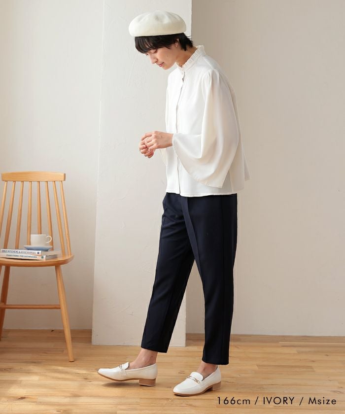 送料無料 スタンドフリルカラーブラウス レディース 春 秋 長袖 M L ≪ゆうメール便配送20・代引不可≫ | アクアガレージ aquagarage