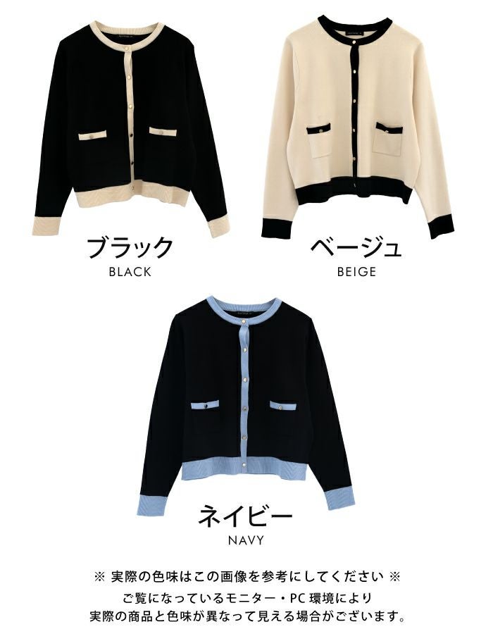送料無料 バイカラーカーディガン レディース 春 秋 冬 長袖 M L | アクアガレージ aquagarage