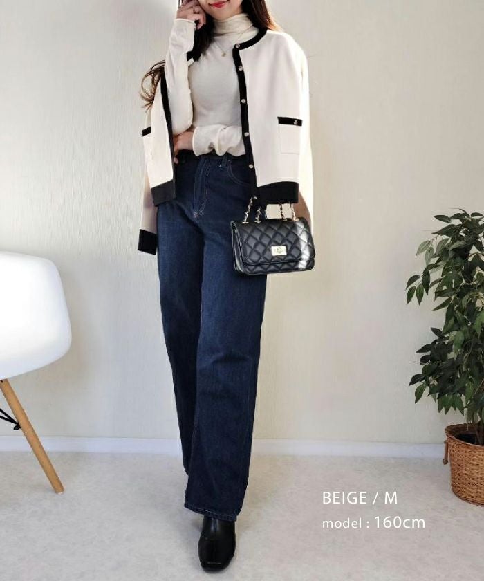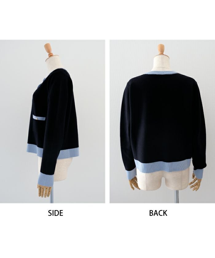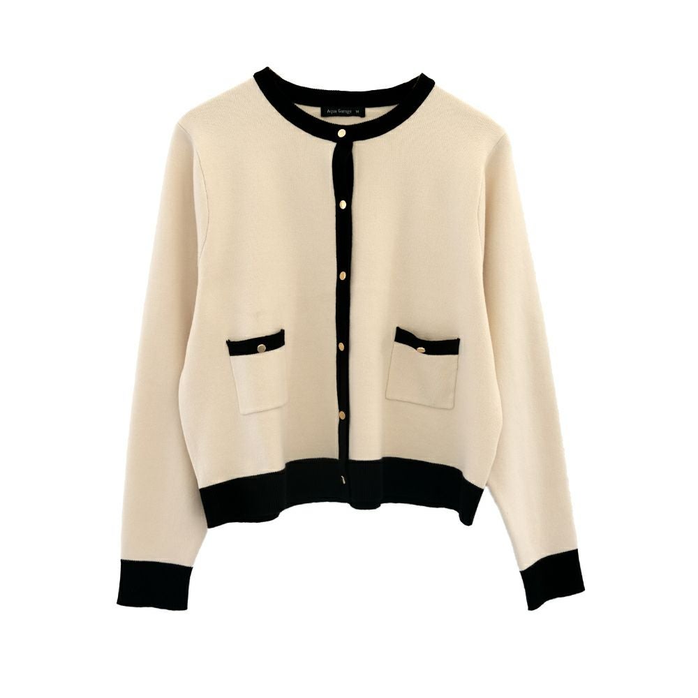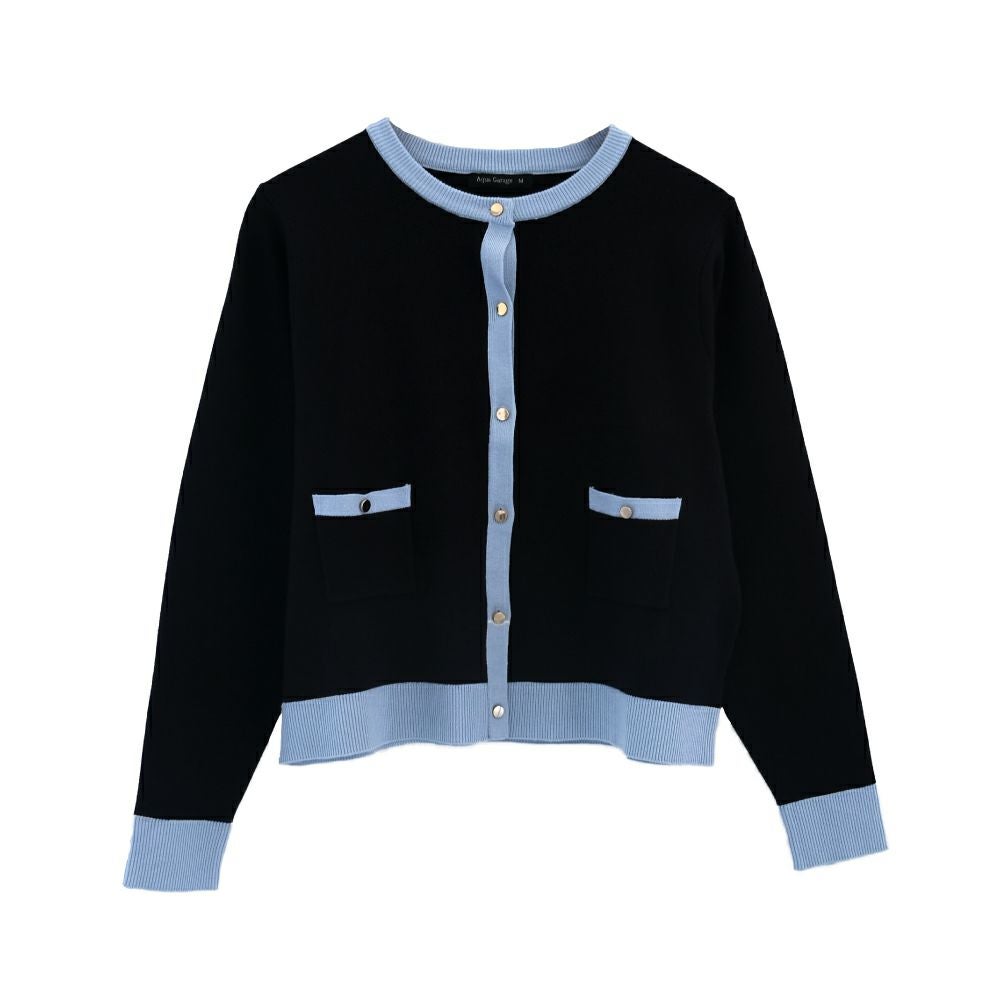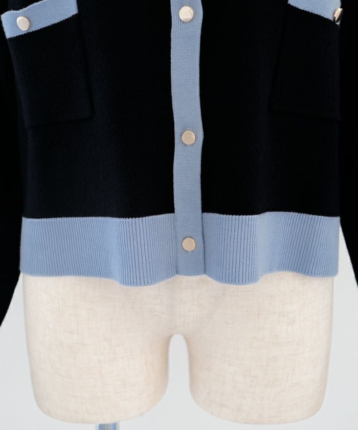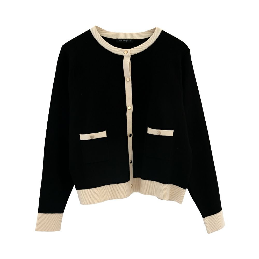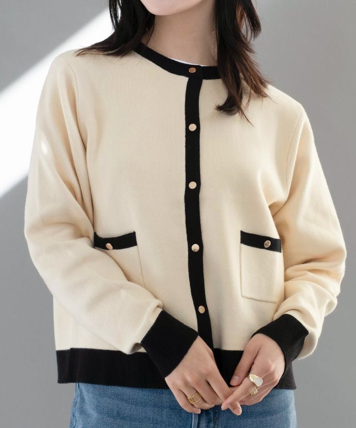 送料無料 襟付きリブニットバイカラーカーディガン 春 秋 冬 M レディース≪ゆうメール便配送30・代引不可≫ | アクアガレージ aquagarage